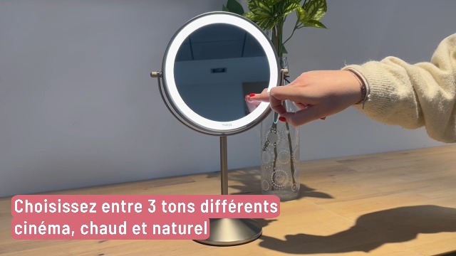 Finition nickel brossé Luminosité puissante : aucun détail ne vous échappe ! Miroir Maquillage épilation Luminosité Variable Miroir Compact éclairé Miroir Compact Grossissant 3X Double Face LED Miroir Grossissant De Voyage Avec sa double-face, profitez d’un côté classique (x1) et d’un côté grossissant x10 pour une précision ultime. Le miroir de beauté Haepi Bella est un accessoire compact et polyvalent conçu pour améliorer votre routine beauté. Doté d'un éclairage intégré puissant, ce miroir assure une illumination claire et lumineuse pour une application de maquillage et un toilettage parfaits Compact et peu encombrant avec son 38 cm de hauteur, 13 cm de profondeur et 23,5 de large, ce miroir vous offre une totale liberté de mouvement grâce à sa conception sans fil. Avec son diamètre de 16,5 cm (hors LED) et 20 cm (miroir + LED), il s'intègre parfaitement dans tous les espaces. Haepi Bella - Bella - Miroir de Maquillage avec éclairage puissant, rechargeable, compact, grossissement 10x, double face ; Vendu par STAR. 8,5 ; Forme · Rond... Grâce à sa luminosité puissante, aucun détail ne vous échappe, que ce soit pour le maquillage, l’épilation, ou la pose de lentilles de contact. Son éclairage LED à luminosité variable, contrôlé par un bouton tactile, vous permet de choisir entre trois tons d’éclairage : cinéma, chaud, et naturel, parfaits pour chaque occasion. Idéal pour un usage quotidien, ce miroir est le compagnon beauté par excellence !, Miroir Grossissant Ventouse Miroir Beauté LED Rechargeable Miroir Grossissant Lumineux Haepi Colette - 7x, LED 3 Modes, Ventouse Rechargeable - Pour Maquillage Et épilation Miroir Grossissant X 50 La finition en nickel brossé apporte une touche d’élégance à votre intérieur. Miroir sur pied Double-face: X1 et grossissant X10 Eclairage LED : bouton tactile on/off et luminosité variable 3 tons : cinéma, chaud, naturel