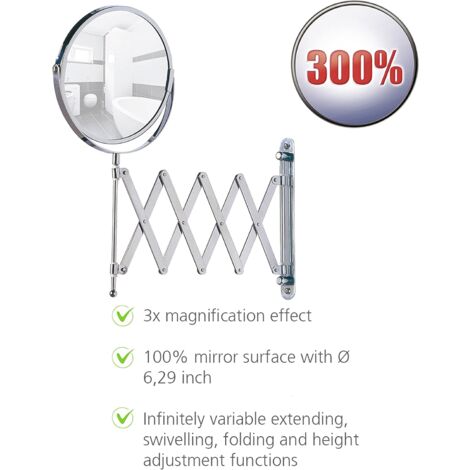 Enregistrement international du design DM/096 448 Miroir Grossissant Miroir Cosmétique Double Face Navaris, Effet Grossissant Miroir Cosmétique Avec Ventouse Pour une utilisation pratique, extensible de 22 à 29 cm du mur, orientable dans n'importe quelle direction avec sa perche télescopique à double articulation. Miroir mural grossissant x10, miroir de maquillage, miroir de salle de bain, miroir mural double... International Design Enregistrement DM/096 448 Double artiation pour une utilisation pratique Imola Miroir Cosmétique Rotatif À 360° Avec Fixation Murale Miroir De Rasage Double Face... Après utilisation, vous pouvez le replier dans sa position gain de place. Doté d'une puissante ventouse adhésive à virole (sans vis et sans trous dans le mur). Miroir cosmétique innovant grossissant 10x avec ventouse. miroir grossissant x10 sur pied 2 faces Chromé, avec 24 lumières LED pour éclairer parfaitement le visage et le cou. Une fois l'utilisation terminée, vous pouvez le replier à sa position SaveRest espace.