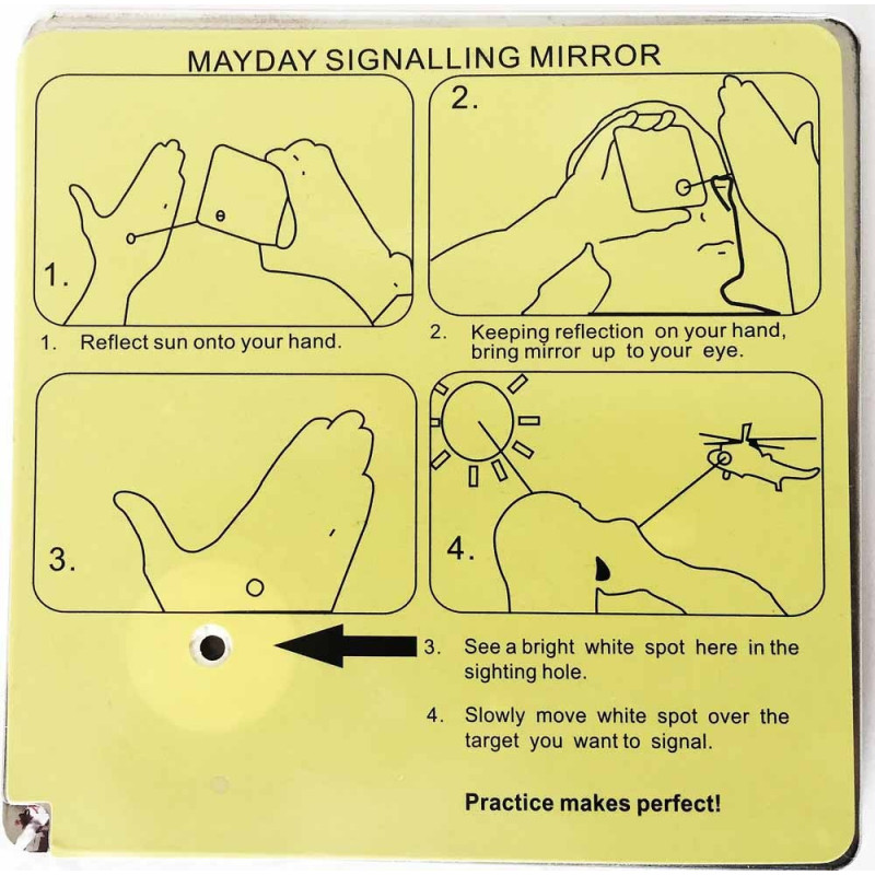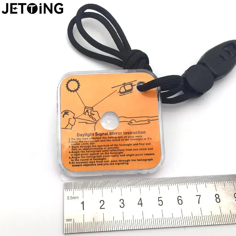 Miroir de signalisation réfléchissant de survie - Survivall Ce miroir de signalisation KIMISS est fabriqué en acrylique durable, résistant à l'usure et aux chutes. Avec des dimensions de 7,7 x 5,1 cm, il est léger et facile à transporter Outil Survie Camping Randonnée Miroir De Survie Extérieur, Outil De Miroir De Signal Réfléchissant Multifonctionnel Portable Pour Le Sauvetage D'urgence Kit De Survie Militaire Spécification : Matériau : Acrylique Couleur : Montré comme image Fonction : Survie en plein air, urgence, etc., Taille : env. 35 g Emballage inclus : 1 miroir de survie avec cordon Miroir héliographe Miroir de signalisation avec sifflet Outil... 57 * 57 * 7 mm / 2,24 * 2,24 * 0,27 pouces Poids : env. Miroir de signalisation avec un indicateur de visée qui aide à viser la cible pour obtenir de l'aide en réfléchissant la lumière Le miroir de signalisation peut également être utilisé comme miroir habituel, avec une lanière pour attacher à d'autres objets Le miroir de survie peut être utilisé par temps clair et ensoleillé ou dans toute situation avec des ressources lumineuses