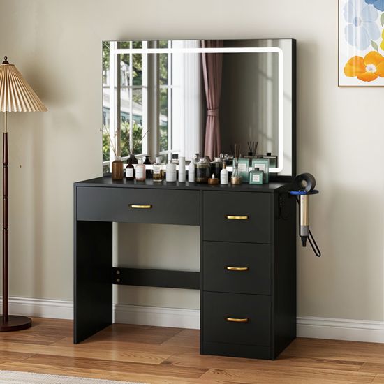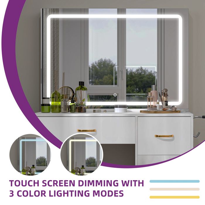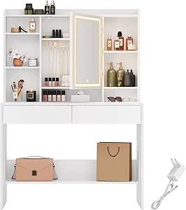 Coiffeuse avec miroir - Maison Avec 3 modes d'éclairage (jaune chaud, blanc chaud, blanc froid) et luminosité réglable. Appuyez simplement sur l'interrupteur tactile pour régler l'éclairage idéal pour le maquillage, la coiffure ou la prise de photos. La combinaison fascinante d'une finition blanche, d'un...Plateau en verre avec miroir Miroir Lumineux 3 Couleurs Coiffeuse Avec Miroir Et Tabouret De Rangement - NHHF - 113X40X140 CM Coiffeuse Design Verre Et Bois Grand miroir lumineux réglable : un grand miroir de 115 cm x 58 cm offre un grand angle de vision pour mettre en valeur votre beauté sous tous les angles. Grâce aux séparateurs amovibles, vous transformez les tiroirs en un espace de rangement spacieux en quelques secondes, adapté aux objets plus encombrants. YITAHOME Coiffeuse avec Miroir LED - 4 tiroirs - 2USB Prise de Courant... Appuyez simplement sur l'interrupteur tactile pour régler l'éclairage idéal pour le maquillage, la coiffure ou la prise de photos. Un mélange élégant de fonctionnalité flexible et de design moderne. Son esthétique élégante et transparente ajoute une touche d'élégance à n'importe quelle pièce. Design élégant en verre trempé : le plateau de table en verre trempé robuste offre beaucoup d'espace pour les décorations tout en permettant une vue claire des objets stockés en dessous.