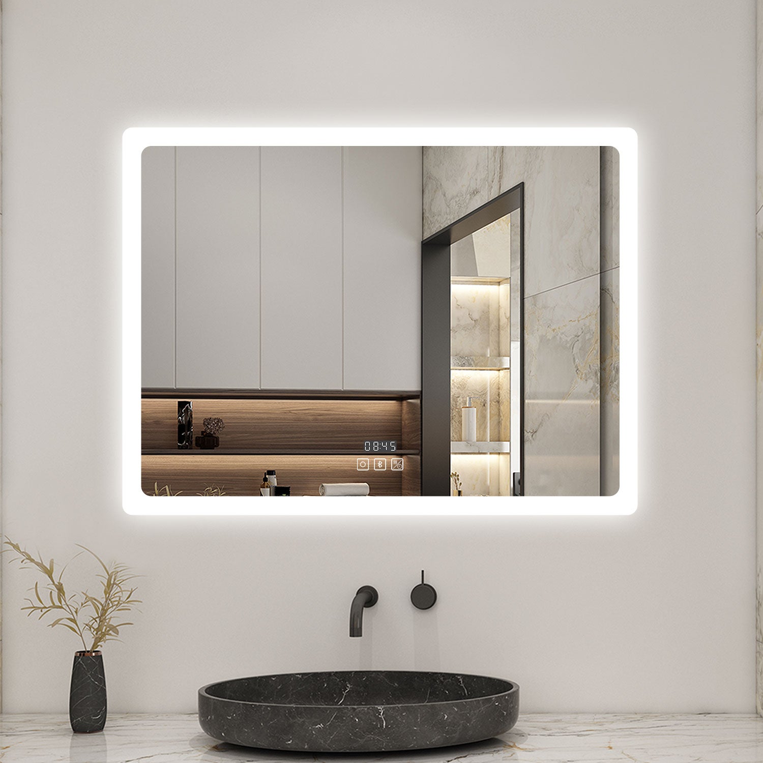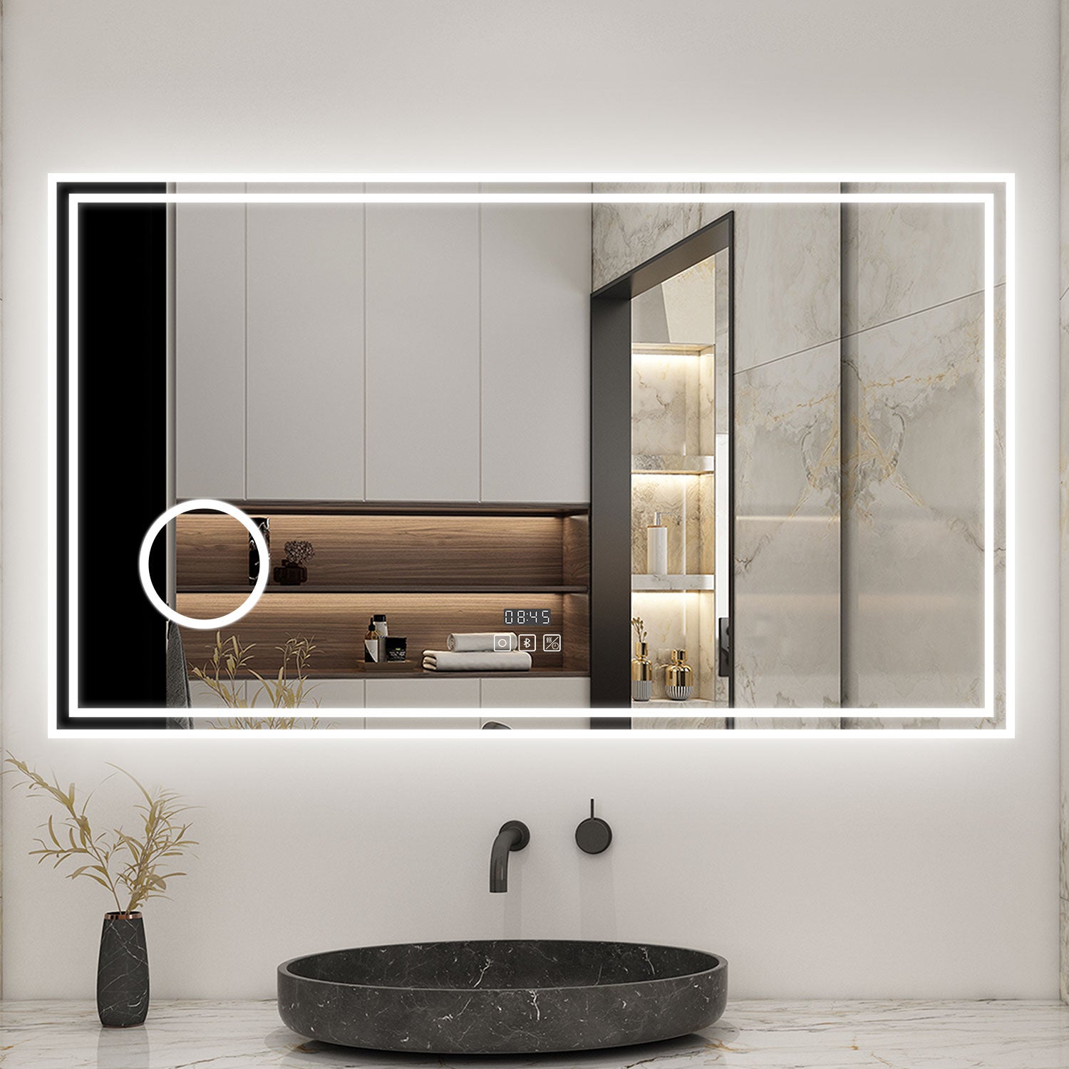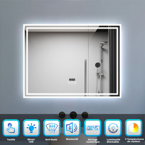 Style simple et élégant. Miroir Salle De Bain Bluetooth Miroir Grossissant Miroir De Salle De Bain AICA 100x60cm - Bluetooth, Anti- Buée, 3 Couleurs, Grossissant 3X - Miroir Lumineux Intelligent Miroir Grossissant 3x Salle Bain Miroir Aica 80x60 Épaisseur du miroir: 5 mm Fonction: Bluetooth 3 couleurs Dimmable Anti-buée Mémoire Mise hors tension automatique après 1 heure Les informations: Puissance maximale: 24WCertifications: IP44, CETension: 220-240VÉpaisseur du miroir: 5 mmDistance du mur: 4cm du murRemarque : si vous recevez un miroir endommagé par le transport, veuillez nous contacter rapidement et nous vous aiderons à résoudre le... Vous pouvez changer la couleur de la lumière que vous aimez en appuyant dessus brièvement, et choisir la luminosité appropriée en appuyant sur le bouton long. [Fonction mémoire] - Le miroir de la salle de bain dispose d’une fonction de mémoire qui se souvient de la luminosité de la lumière lorsqu’elle a été éteinte pour la dernière fois. AICA Miroir Salle de Bain 80 x 60cm, Bluetooth 3 Couleurs dimmable Horloge Anti-buée mémoire, Miroir Lumineux Mural. AICA Miroir Salle de Bain 80 x... [3 couleurs et dimmable] - Le miroir a 3 température de couleur réglable (blanc chaud 2700K, blanc neutre 5000K, blanc froid 6500K). il ne livre pas en Corse et au Luxembourg., 2., En cas de retour pour remord, ou changement d'avis, les frais de retour seront à la charge de l'acheteur., 3., Merci de contacter notre SAV, si vous avez des questions., 4., La livraison par transporteur s'entend en limite de propriété sur trottoir, pied d'immeuble ou pas de porte., 5., Votre numéro de téléphone est très important car les rendez-vous sont gérés directement par les transporteurs., 6., Veuillez contacter le service clientèle avant toute procédure de retour, sinon nous ne sommes pas responsables des produits endommagés pendant le processus de retour, et nous ne rembourserons pas les frais d’expédition encourus. Économie d’énergie intelligente, la lumière LED s’éteindra automatiquement 1 heure après son allumage. Calibre le chaos Par miroir led sensea logique impardonnable pilote [Fonction Bluetooth] - Après vous être connecté au Bluetooth avec votre téléphone et votre tablette, vous pouvez profiter d’une expérience d’écoute musicale relaxante tout en prenant un bain. [Système tactile sensible à la peau] - Avec des boutons tactiles super sensibles, vous pouvez allumer / éteindre les lumières.