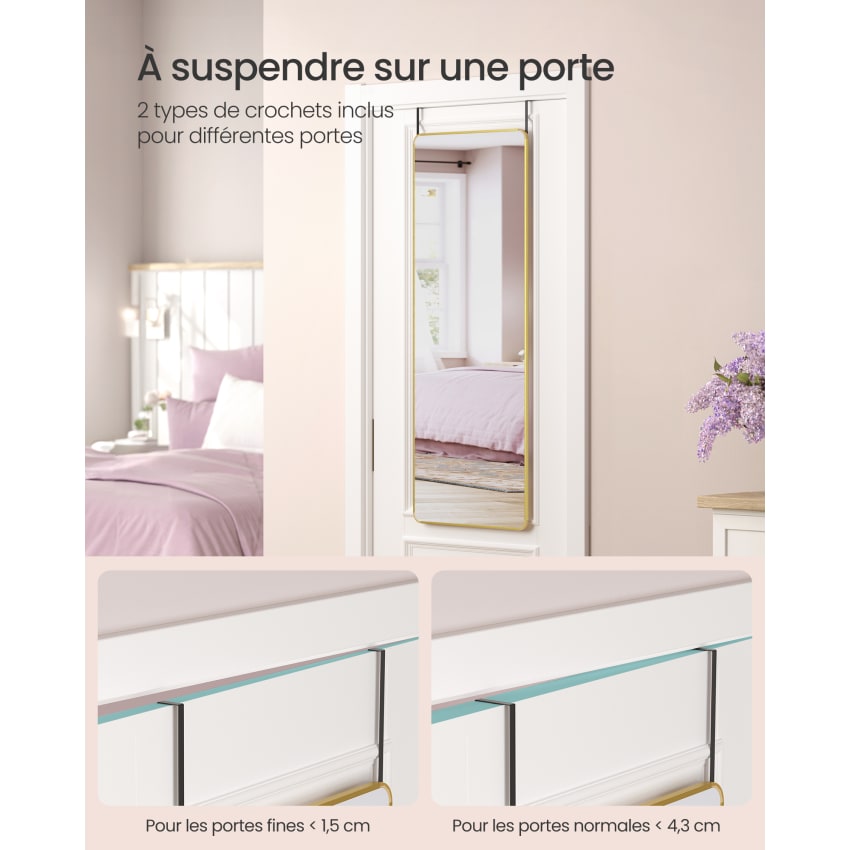 Caractéristiques : - Couleur : Doré clair - Matériaux : Verre trempé, alliage d'aluminium - Dimensions : 120 x 40 cm (L x l) - Poids : 4,2 kg. Voir plus d... Film de sécurité : Empêche les éclats de se disperser si le miroir se brise accidentellement. Livraison : 1 x Miroir intégral, 1 x Kit de montage, 1 x Mode d'emploi Plus qu'un miroir, c'est aussi une pièce décorative qui rehausse le style de votre chambre, entrée, salon ou salle de sport Précautions SONGMICS : Sortez le miroir intégral de l’emballage avec précaution pour éviter de l’abîmer. Placement flexible : Suspendez-le sur un mur ou une porte selon vos besoins. 【CADRE EN ALLIAGE D'ALUMINIUM DE QUALITÉ PREMIUM】Le cadre solide est conçu pour résister à la rouille tout en conservant sa finition brillante. Songmics SONGMICS Ganzkörperspiegel 120 x 40 cm rechteckig New Year Top Sellers Veuillez fixer le miroir à un mur ou une porte selon les instructions. Cadre en alliage d'aluminium de qualité premium : Conçu pour résister à la rouille tout en Leger Porte Miroir Intégral Suspendu, 120 X 40 Cm, Miroir Arqué, Cadre En Alliage D Aluminium Verre Trempe Pour Chambre Salon Dressing Dore Clair Miroir Chambre Salon Dressing Design épuré : Le cadre arqué ajoute une touche d'élégjance à votre chambre, entrée, Caractéristiques : Couleur : Doré clair Verre trempé haute résistance : Réduit le risque de casse. HOMCOM Miroir mural arqué 50 x 70 cm haute définition cadre alliage... 【VUE COMPLÈTE, POLYVALENCE】De dimensions 120 x 40 cm, ce miroir intégral vous offre une vue complète de votre tenue. Dimensions : 120 x 40 cm (L x l), Poids : 4,2 kg Grâce à son cadre léger, il peut être déplacé facilement et posé chez vous, à l'endroit de votre choix 【CHARMANT DANS TOUTE PIÈCE】 Ce miroir psyché présente un cadre arqué épuré qui ajoute de l'élégance à votre intérieur. Matériaux : Verre trempé, alliage d'aluminium 【PRÊT À ÊTRE INSTALLÉ】 Prêt à poser et à utiliser, ce miroir intégral suspendu ne nécessite aucun montage.