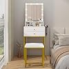 Le plateau en verre transparent vous offre une vue directe sur vos produits. Coiffeuse 3-en-1 Pour Espaces Compacts Description du produit YU YUSING Coiffeuse 3 en 1 avec Miroir LED Rabattable Fabriquée en bois MDF de qualité avec glissières métalliques, cette table de maquillage assure robustesse et fluidité d’utilisation. Bureau Coiffeuse YU YUSING Coiffeuse Avec Miroir LED Et Tabouret, Table De Maquillage Petite Coiffeuse Le tabouret offre une assise confortable grâce à sa mousse haute densité et son couvercle à rangement intégré. Le plateau en verre transparent offre une vue directe sur vos produits. EXTENSION LATÉRALE ASTUCIEUSE: Le panneau latéral rabattable transforme instantanément votre espace. Fermé, il maintient un style épuré et ordonné AVIS YU YUSING Coiffeuse LED Lumière Dimmable : Mon Pensée pour les petits intérieurs, cette coiffeuse minimaliste se transforme au gré de vos besoins : espace beauté intime le matin, coin bureau l’après-midi, table de nuit discrète le soir. Détails Qui Font Toute la Différence SÉCURITÉ MAXIMUM : Équipée d'un dispositif anti-basculement à l'arrière, vous pouvez fixer cette petite coiffeuse au mur pour une sécurité accrue. Idéal pour maquillage précis à toute heure RANGEMENT INTUITIF ET SPACIEUX : Dotée d'un grand tiroir avec séparateurs amovibles et de deux petits tiroirs, cette petite coiffeuse avec miroir offre un espace de rangement optimisé YU YUSING Coiffeuse avec iroir LED et Tabouret, Table de aquillage... Miroir LED HD avec 3 Teintes de Lumière & Variateur Tactile MIROIR LED AVEC 3 MODES: Éclairez votre beauté selon vos envies. Le tabouret rembourré à roulettes se glisse parfaitement en dessous pour un rangement discret Le miroir HD intègre un éclairage LED réglable : lumière chaude, froide ou naturelle, avec intensité ajustable de 10 à 100 %. Deux tiroirs spacieux permettent de ranger maquillage, bijoux ou accessoires du quotidien 1 Miroir pliable 2 Rangement supplémentaire 3 Tabouret avec rangement