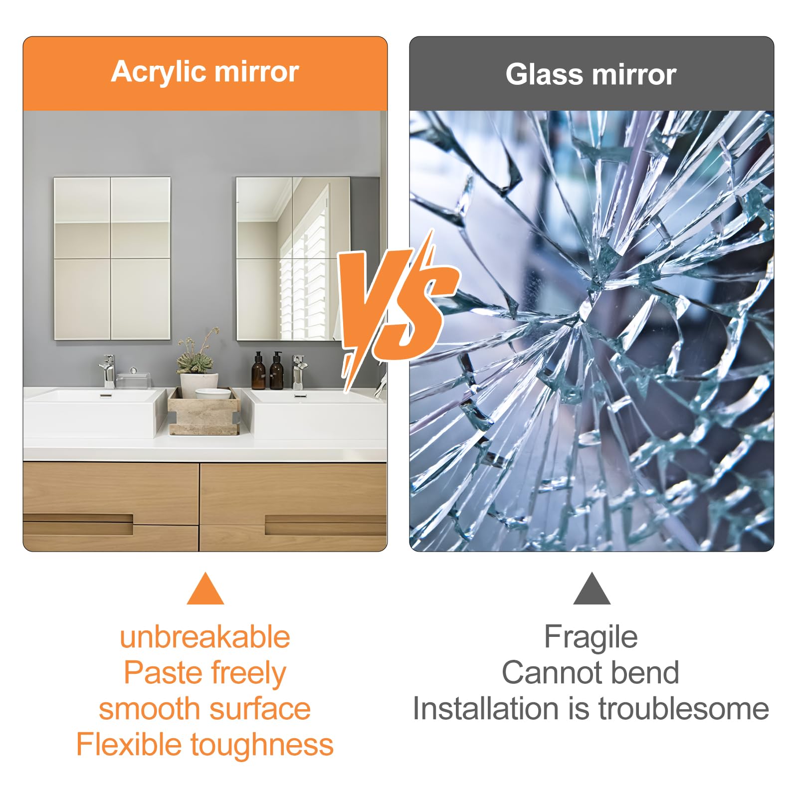Large Domaine D’Application:Le film miroir flexible autocollant acrylique convient aux salles de bain, chambres à coucher, salons, vestiaires, fonds de télévision, couloirs, magasins de vêtements, etc. Miroir Sans Perçage 4 Pièces Verre Adhesif 30 X 20cm Miroirs Muraux Verre Miroir Mural Matériau En Acrylique:Le miroir mural adhesif est fabriqué en matériau acrylique de haute qualité, avec une texture smooth et délicate. Envie d'un miroir sans percer de trous ? Ce miroir rond adhésif ASSRECT de 20cm de diamètre est la solution ! En acrylique de 2mm d'épaisseur... Facile à Installer:Le acrylique miroir autocollant ne nécessite pas de perçage ou de dommages aux murs, ce qui rend l’installation simple. Chaque flexible miroir acrylique adhésif a un adhésif fort pré appliqué sur le dos. Déco facile et moderne avec ces 4 miroirs autocollants carrés de 20x20 cm ! En acrylique flexible, ils sont incassables, plus sûrs que le verre et... Il peut être utilisé seul ou combiné en un miroir plein corps ou un miroir plus grand. Quantité Et Taille:Vous recevrez quatre miroir collant mural de taille 20cm×30cm/7,87×11,81 pouces. Lors de l’installation, il suffit de nettoyer et de sécher le mur, de peler la pellicule protectrice, de l’aligner sur la position et de presser pour le fixer. Autocollants Miroirs Acrylique 4 Miroirs Adhésifs Acrylique Le miroir acrylique a une épaisseur de 2mm. Que ce soit sur des carreaux lisses, du verre, des murs peints au latex ou des surfaces en bois, le miroirs muraux adhésifs acryliques adhère fermement.