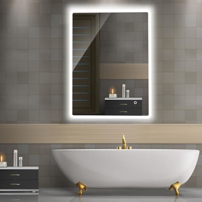 Miroir Salle De Bain Lumineux Miroir De Salle De Bain Lumineux Homewell - 50 X 70 Cm - Éclairage LED Tactile - Étanchéité IP67 - Design Moderne Miroir Tactile IP67 Prenez des précautions lors de l'installation pour éviter tout accident. Miroir LED 50x70 Cm éclairage Touch IP67 6500K Blanc Froid Miroir Salle De Bain 50 Cm: Au Meilleur Prix Miroir Salle Bain LED Certification : CE, EMC, LVD, RoHs Avertissement De Sûreté Attention, ce miroir est en verre et peut se briser en cas de chute ou de choc. Miroir en verre de qualité supérieure, cadre entièrement en fer solide et éclairage LED durable ne laissent rien à désirer. Grâce à sa forme élégante et extra simple, le miroir peut être combiné avec tous les styles d'intérieur Ledkia Miroir Salle de Bain avec Éclairage LED Essauira 70x50cm... L'éclairage de bord est non seulement élégant, mais crée également une excellente lumière. Nous expédions depuis l'Allemagne et peuvent être livrés dans un délai de 3 à 7 jours ouvrables. Si vous avez des questions sur nos produits, n'hésitez pas à nous contacter. Démarrage instantané sans scintillement et sans scintillement. Miroir en verre de qualité supérieure, cadre entièrement en fer solide et éclairage LED durable ne laissent rien à désirer. Description du produit Caractéristiques : 1., Le système de montage professionnel fourni permet de monter le miroir horizontalement et verticalement 2., Verre cristal durable., 3., Interrupteur d'alimentation., 4., Miroir respectueux de l'environnement sans cuivre de 5 mm., 5., Technologie d'éclairage LED., 6., aluminium + boîte de lampe en PVC, température blanche froide 6500 K., 7., L'interrupteur tactile miroir., 8., Barre lumineuse de 22 W, étanche IP67., 9., Dimensions (H x l) : 70 x 50 cm/80 x 60 cm Spécification : 1., Interrupteur tactile pour que vous puissiez régler toutes les fonctions., 2., Très haute étanchéité (IP 67)., 3., Économie d'énergie : environ 95 lumens/W., 4., Bon rendu des couleurs Ra 90., 5., Lampes LED avec longue durée de vie : environ 50 000 heures., 6., Alimentation LED de qualité supérieure avec tension de sortie régulée.