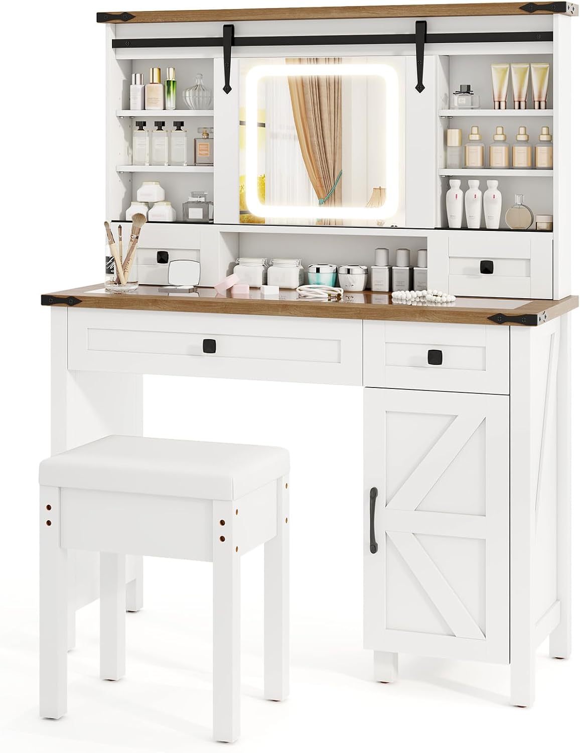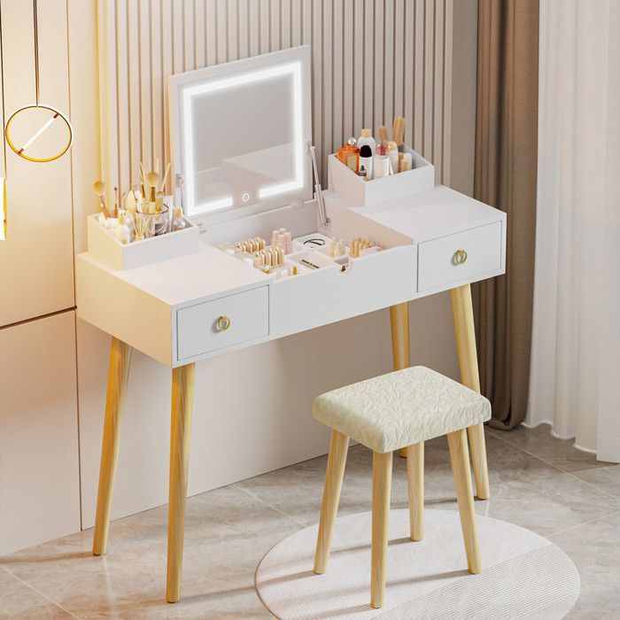 【Design d'angle L pratique】Spécialement conçue pour les espaces réduits, cette coiffeuse d'angle en forme de L (120x80x135 cm) optimise parfaitement les coins de votre pièce. LEROE Coiffeuse avec Hollywood LED iroir et Tabouret Blanche,Table de aquillage Bureau... Le rangement réglable en hauteur sous l'étagère est une solution pratique qui maintient votre espace bien rangé et peut être personnalisé selon vos besoins. 【Grand Miroir LED à Luminosité Réglable】Avec son grand miroir rectangulaire (88., 3x40., 3 cm) et sa barre LED intégrée, cette coiffeuse offre un éclairage professionnel pour le maquillage. Rangement Cosmétiques éclairé Grande Coiffeuse Avec éclairage Led Réglable, Table De Maquillage Avec Miroir Tabouret 3 Tiroirs 2 Portes De Rangement Blanc Pour Chambre 110×40×151 Cm Coiffeuse Blanche Les compartiments modulables permettent un classement sur mesure pour cosmétiques, accessoires et bijoux. Miroir LED à Luminosité RéglableGrand miroir 80., 3x40., 3cm avec éclairage LED réglable (3 températures) pour un maquillage parfait à toute heure. 【Rangement intelligent 5 tiroirs】Avec ses 5 tiroirs spacieux et son étagère ouverte, cette coiffeuse optimise l'organisation de vos produits beauté. 【Tabouret assorti ultra-confort】Le tabouret inclus (40x30x40 cm) avec son assise en tissu respirant et mousse dense offre un confort optimal pendant le maquillage. Son design assorti à la coiffeuse crée une harmonie esthétique. Tabouret inclus premiumAssise confortable (40x30x40cm) en tissu respirant, design assorti et structure métallique supportant. Les commande tactile 3 modes de luminosité réglable (blanc chaud/neutre/froid) s'adaptent à toutes les situations, garantissant un rendu parfait jour et nuit. ÉCLAIRAGE LED RÉGLABLE : Dotée de trois couleurs de lumière (blanc chaud, blanc naturel et blanc froid), cette coiffeuse offre un éclairage parfait à chaque instant, facilement réglable d'une simple pression. GAIN DE PLACE ET GRANDE CAPACITÉ : Avec son design compact de 50 cm de largeur x 160 cm de hauteur, cette coiffeuse s'intègre parfaitement dans les petites pièces et offre un... Design d'angle optimiséCoiffeuse d'angle en forme de L (120x80x135cm), finition blanche moderne et structure MDF/métal ultra-robuste. La livraison en 2 colis (qui peuvent arriver séparément) est soigneusement emballée pour une réception en parfait état. Miroir Led Coiffeuse Juskys Coiffeuse Zoey Avec Tabouret, Miroir LED Tactile Coiffeuse Avec Miroir Et Tabouret