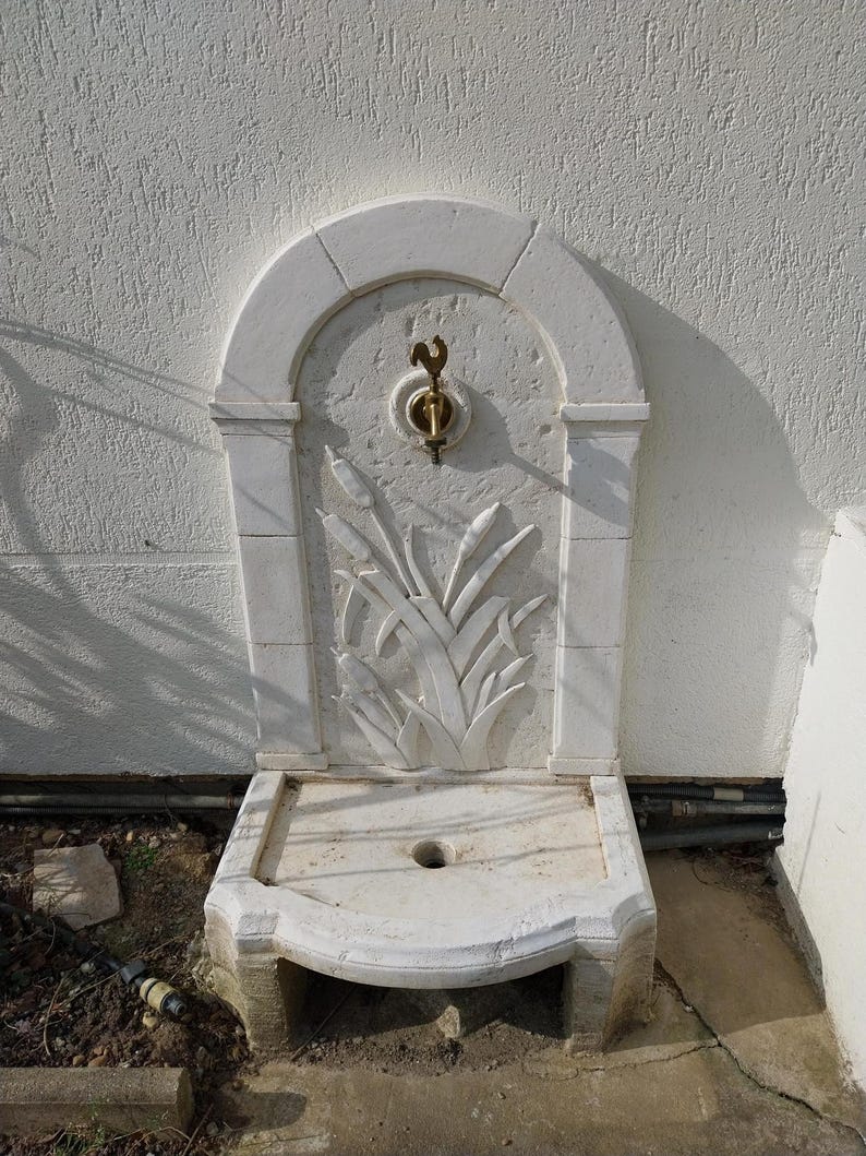 Fontaine murale Ouest 37x32x77cm. pour les Jardins en Betón Pierre. Couleur Vert | Leroy Merlin Description : Fontaine ROSEAU - en pierre reconstituée composée d'un réceptacle et d'un fronton - Vendue avec un robinet en laiton - 62 x 42 x 93 cm. Fontaine Extérieure Résistante Gel Fontaine Pierre Reconstituée Mistral Pierre Vieillie 50x39 Cm H. 90 Cm Fontaine Murale Pierre Reconstituée La fontaine estvendue avec un robinet en laiton. La fontaine 'ROSEAU' est un élément central pour votre jardin. Elle imite parfaitement l'aspect de la pierre naturelle et apporte une touche élégante à votre espace extérieur. Cette fontaine murale est très résistante aux intempéries grâce à sa composition en pierre reconstituée Fontaine ROSEAU - en pierre reconstituée - 62 x 42 x 93 cm - Habitat... Dimensions : 62 x 42 x 93 cm., Poids : 70 KG., Robinet : En laiton. le + produit : Vendue avec un robinet en laiton composée d'un réceptacle et d'un fronton. composée d'un réceptacle et d'un fronton Elle est composée d'un receptacle avec trou d'évacuation et d'un fronton. Colisage : 1 colis : - 0,42 x 0,62 x 0,93 m, 70 kg. Offrez vous une fontaine élégante imitant parfaitement l'aspect de la pierre naturelle et authentique qui habillera parfaitement votre espace exterieur .