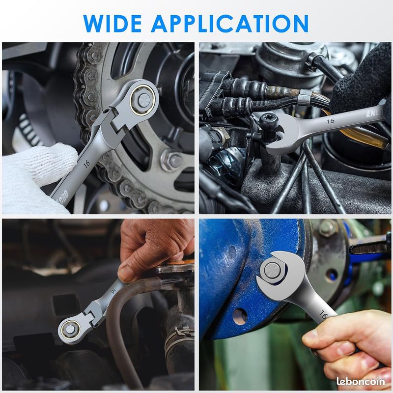Outillage Professionnel Automobile Jeu De Clés à Cliquet à Tête Flexible, 9 Pièces De Clés Mixtes Rotatives De 9 à 19 Mm, Clé Rotative Professionnelle à 180° Avec Poignée Pour Travaux De Réparation Automobile Kit Clés Mixtes 9 à 19 Mm CLE A MOLETTE,7 PCS--Jeu de clés à cliquet à tête flexible métriques Kit De Clé À Tête Flexible, Kit De Clé À Cliquet, Clé À Cliquet... ⭐【POUR LES ZONES ÉTROITES】 La clé de torsion à tête flexible standard offre un accès facile aux écrous et boulons dans les espaces restreints, ce qui la rend parfaite pour les zones difficiles d'accès. Il comprend 1 manche de clé et 8 têtes de clé (9 mm, 10 mm, 11 mm, 12 mm, 13 mm, 14 mm, 17 mm, 19 mm). La conception à tête ronde élimine tout pelage ou fente de la clé, garantissant un ajustement parfait contre la fixation pour une grande fiabilité. Spécification: Type d'article : Kit de clés à tête flexibleMatériau : Acier au chrome vanadiumModèle : 2048Spécification de la Tête de Clé (métrique) : Env. ⭐【FONCTIONNEMENT FLEXIBLE】 Ce jeu de clés remplaçables présente une conception d'engrenage rotatif à 180 degrés, permettant un fonctionnement flexible. ⭐【ASSURANCE QUALITÉ】 Notre jeu de clés à cliquet est accompagné d'une garantie de marque et d'un service après-vente de première classe de nos magasins. Si vous avez des questions sur les produits, veuillez contacter notre service client professionnel, nous résoudrons le problème efficacement pour vous. Jeu de clés à cliquet - CIKONIELF - Modèle 2049 - 20 pièces - Acier au...