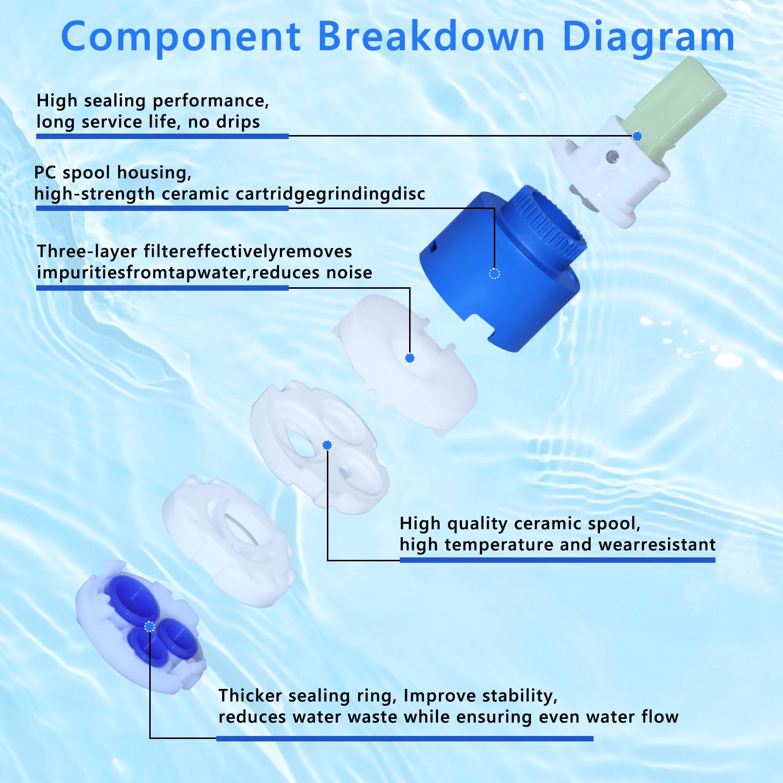 Une solution propre et silencieuse pour votre confort au quotidien. Mitigeur Douche Thermostatique Sedal 40 Mm Cartouche De Robinet En Cramique Pour Mitigeur Valve Cartouche Robinet Cuisine Salle De Bain 62 mm Température maximale : 90 °C Résistance à la pression : Jusqu'à 3,5 kPa Contenu de l’emballage : 2 x cartouches de remplacement 40 mm Conseils d’installation: 1., Vérifiez la taille avant l'achat : démontez votre mitigeur et mesurez l’ancienne cartouche. Cartouche ceramique mitigeur 40mm Cartouche ceramique mitigeur 40mm : la sélection produits Leroy Merlin de ce mercredi au meilleur prix ! Retrouvez ci-après nos 16 offres, marques, références et promotions en stock prêtes à être livrées rapidement dans nos magasins les plus proches de chez vous Idéale pour une utilisation durable et fiable. Installation facile sans outils: Cette cartouche céramique mitigeur 40 mm s’installe rapidement sans outils spécialisés. CECIPA Sedal 40 mm Cartouche de robinet en Céramique pour Mitigeur... Compatible avec les mitigeurs de lavabo, douche ou évier, elle assure un fonctionnement fluide au quotidien. Ce modèle convient uniquement si vous avez besoin d’une cartouche céramique de 40 mm., 2., Détartrage en cas de fuite : si le robinet fuit toujours après remplacement, nettoyez soigneusement les dépôts de calcaire dans le corps du mitigeur., 3., Alignement correct : assurez-vous que les deux pieds de guidage s’insèrent correctement dans les encoches du robinet., 4., Fixation sécurisée : revissez la rondelle de pression et l’écrou sans forcer – un serrage excessif peut endommager les joints., 5., Compatible uniquement avec mitigeurs : ne convient pas aux robinets thermostatiques ou à double poignée., Domaines d’application: 1., Remplacement de cartouches défectueuses ou difficiles à manœuvrer 2., Pour cuisine, salle de bain, WC invités, douche et lavabo 3., Compatible avec de nombreux modèles standard de 40 mm Idéal pour les bricoleurs, les propriétaires ou toute personne souhaitant éviter des frais d’installation. FRAP 40mm Seramik Kartuş Musluk Kartuşu Karıştırıcı Düşük Tork Mili Serbest Dönü Compatibilité universelle: Cette cartouche mitigeur douche 40mm est parfaitement adaptée au remplacement de nombreuses robinetteries monocommande dans la cuisine ou la salle de bain. Contrôle précis du débit et de la température: Grâce à la cartouche robinet mitigeur, vous pouvez ajuster le débit d’eau chaude et froide en toute fluidité, sans à-coups ni bruit.