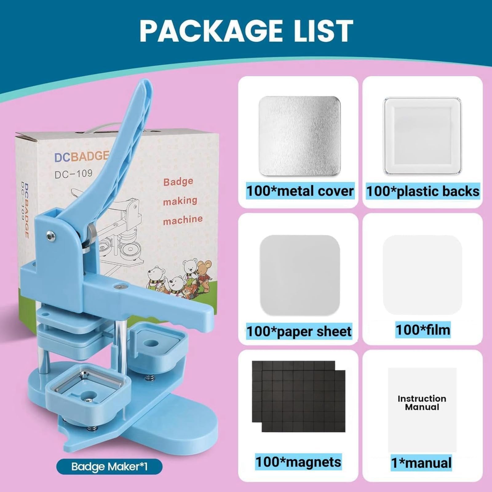 Machine à aimant photo, fabricant de badges de boutons 50 * 50 mm, machine de fabrication de Utilisation simple : le kit de machine à aimant de réfrigérateur est compact et portable, adapté aux débutants. Que vous soyez un amateur de bricolage à la maison ou un petit marchand d'artisanat, vous pouvez facilement terminer la production d'aimants de réfrigérateur photo Machine A Magnet Machine à Aimant De Réfrigérateur Carré 50 X 50 Mm, Machine à Faire Soi-même, Machine à Fabriquer Des Badges Avec Coupe-papier Et 100 Composants, Pour Fabricant De Boutons Personnalisés Kit Fabrication Badges Magnets 50x50 Mm Français : Mode d'emploi : 1., Utilisez le gabarit pour découper d'abord la forme de la photo 2., Côté A : placez la feuille de fer, la photo et le film transparent dans l'ordre 3., Côté B : placez la plaque arrière 4., Appuyez d'abord sur le côté A, puis sur le côté B 5., Détachez l'autocollant magnétique et collez-le au dos de l'aimant de réfrigérateur pour terminer le produit Spécifications : Nom : machine à fabriquer des aimants carrés/machine à fabriquer des aimants Taille de l'aimant de réfrigérateur : 2*2 pouces/5*5 cm Taille de la machine : 14,37*9,25 pouces Contenu : 1* Machine à fabriquer des aimants de réfrigérateur 1* Coupe-papier 100 pièces de matériaux (n'incluent que les produits de l'image principale) Remarque : Si vous l'utilisez pour la première fois, veuillez acheter un ensemble complet. High-Quality Design: Made from premium materials, this DIY Square Fridge Magnet Badge Button is crafted for long-lasting use, making it for large quantities of DIY crafting projects that require reliability HUIBBGO Kit de création de Badges 50 x 50 mm - Aimants carrés pour réfrigérateur avec Machine à Badges, Coupe-Papier et 100 Composants - Idéal pour la création... Les consommables, cutter et machine sont indispensables. Complete Crafting Kit: This square button press kit comes with 100 Set Square Magnetic Button Refills, including magnet backs, metal covers, and plastic films, providing everything you need to kickstart your creative projects right away Use it to create photo magnets, decorations, wedding badges, classroom crafts, and more. Customizable Creations: The Square Photo Magnet Button Maker 2 x 2 (50mm x 50mm) allows you to easily create unique fridge magnet button badges, perfect for personalizing your space