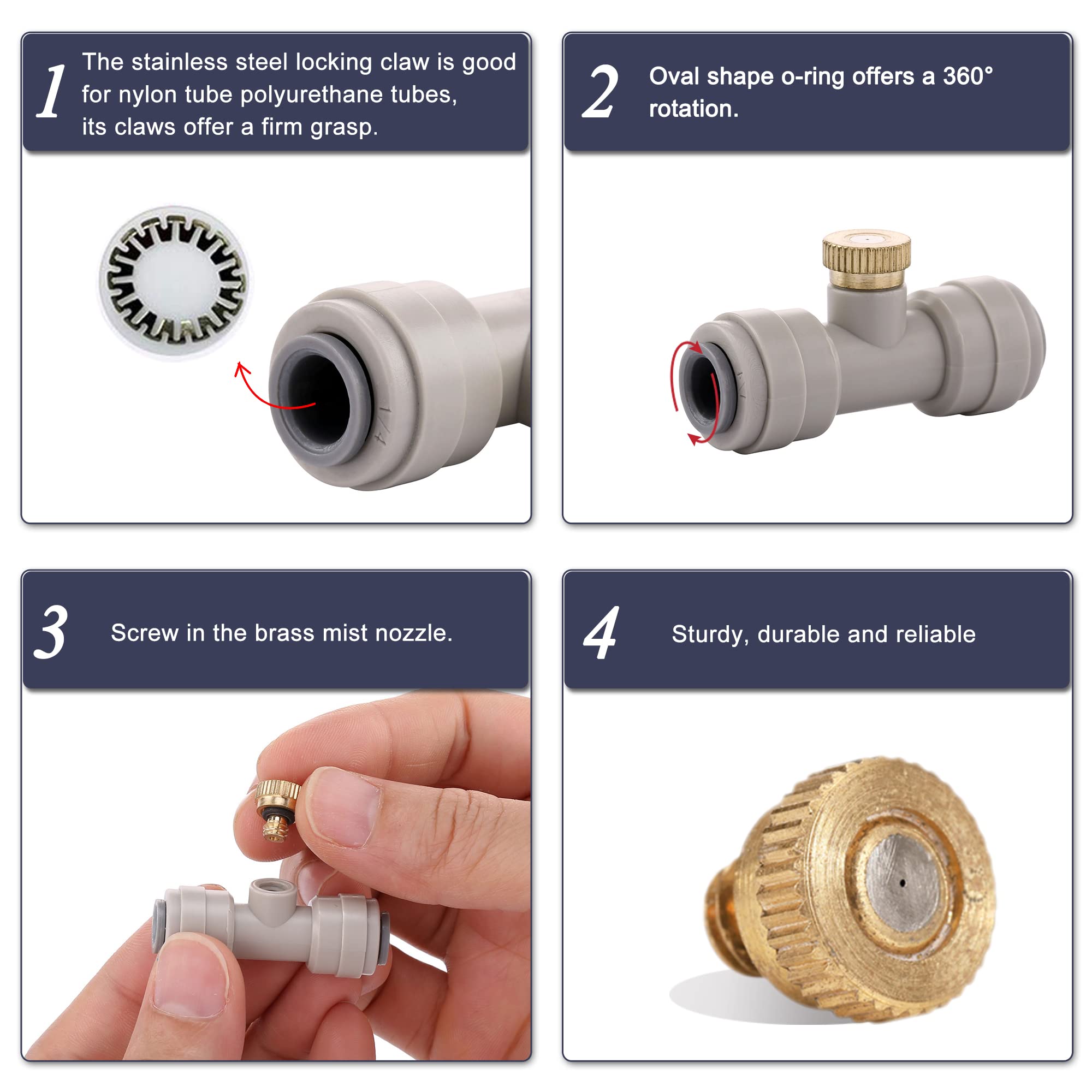 Lot Système de brumisation haute pression 20 buses Kit parasol 8... Conception à l'épreuve des fuites: chaque buse est équipée d'un anneau d'étanchéité pour éviter les fuites d'eau, garantissant que votre système de brumisation fonctionne efficacement et sans gaspillage., ., Pulvérisation de buse de tuyau de buse Ensemble complet: Ce kit comprend 20 t-shirts de buse en laiton et 4 bouchons d'extrémité, garantissant que vous avez tout ce dont vous avez besoin pour créer votre système de brumisation personnalisé., ., Avec suffisamment de buses pour une utilisation quotidienne, vous aurez beaucoup de remplacements disponibles., ., Jardin de buse de pulvérisateur Buse De Brumisation Pour Jardin Lot De 20 Buses De Brumisation Coulissantes De 6,35 Mm, Pulvérisateur De Tuyau Avec 4 Bouchons D'extrémité, Système De Refroidissement Pour Système De Brumisation Extérieur Lot Buses Brumisation Raccords T 1/4 Pouce Construction robuste: en laiton et en plastique, ces buses de brumisation sont résistantes à la rouille, à la corrosion et à la déformation., ., Leur conception garantit des performances durables, ce qui en fait un choix fiable pour votre système de brumisation., ., Buse de pulvérisation du système de brume Installation facile : conçu pour s'adapter à un tuyau de 6,35 mm, il suffit d'insérer le tuyau dans l'orifice bleu de la base de la buse de brumisation et de le fixer Description: Transformez votre espace extérieur en un endroit cool et rafraîchissant avec les buses de brumisation de 20pcs., ., Cet ensemble comprend 20 buses de brumisation, 4 bouchons d'extrémité et 1/4 t-shirts de buse monsieur., ., Parfait pour construire votre propre système de brumisation extérieure pour le refroidissement, l'arrosage des plantes et plus encore., ., Idéal pour les jardins, les patios, les terrasses, les piscines, les abris d'animaux et toutes les zones extérieures nécessitant une touche de refroidissement., ., Fonctionnalités:., ., Builles de brouillage., ., -Color: ., ., -Material: PPE., ., -Size: 4x1,8 cm / 1., 57x0,71 pouces., ., -SUSIBLE POUR 1/4 Tubes., ., Remarque: Mesure manuelle, veuillez prévoir de légères erreurs sur la taille., ., Les couleurs peuvent exister une légère différence en raison de différents écrans., ., Package incluant 20 * BOOTS DE MORT Lot de 20 buses de brumisation en laiton avec raccords coulissants de 6