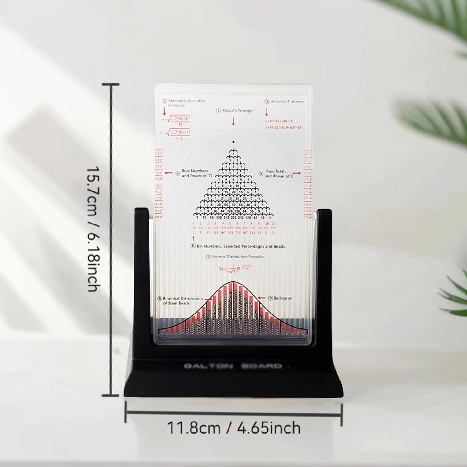 Planche de galton pour la physique, laboratoire de démonstration, équipement d'enseignement, équipement expérimental, aides pédagogiques Planche de Galton | La boutique du cool Matériel Physique Probabilités Modèle D'expérience Physique De La Planche Dalton, Jouet De Bureau De La Planche Galton, Démonstration De La Loi Statistique Efficace, Instrument Matériel Laboratoire école Elle utilise des piquets soigneusement disposés pour guider les billes qui tombent selon des modèles statistiques mesurables, illustrant ainsi de manière vivante les probabilités et le hasard. Idéal pour les enseignants pour expliquer visuellement des concepts de physique complexes, éveiller la curiosité des élèves et favoriser l'apprentissage pratique. SOLUTION: Cours les lois statistiques de la transmission des caracteres... CONSTRUCTION DURABLE ET DE HAUTE QUALITɠ: Fabriquée en acrylique et PP de qualité supérieure, cette planche de Galton est dotée de piquets robustes, de rainures en V et de panneaux renforcés pour une utilisation durable en classe ou en laboratoire. DÉMONSTRATION INTERACTIVE DE COURBE EN CLOCHE : Inclinez la planche pour libérer des billes d'acier et observer en temps réel la formation d'une courbe de distribution normale. Idéal pour la physique, les statistiques et l'éducation. RESSOURCE POLYVALENTE POUR LABORATOIRE ET LA CLASSE : Allie théorie et expérimentation, permettant aux élèves d'interagir avec les phénomènes probabilistes grâce à des activités guidées.