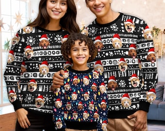 Occasions de port : convient à divers contextes, notamment les fêtes de Noël, les réunions festives et les événements familiaux, répondant à des préférences variées en matière de tenues de fête tout en équilibrant le style contemporain et l'occasion festive. Parfait pour les fêtes de Noël ou les réunions de famille, il crée sans effort un look festif débordant de fantaisie et de chaleur, transmettant l'essence culturelle unique de la saison : joie, confort et inclusivité. Que vous cherchiez un pull de Noël pour femme, homme ou enfant, notre collection a de quoi habiller toute la famille avec style. Chaque modèle est unique, directement issu de l'imagination débordante de nos graphistes La technique d'impression intégrale rend méticuleusement des éléments tels que les rennes et les flocons de neige, transformant ce vêtement d'une simple tenue en une création artistique sur le thème de Noël. HELLORSOON Pull Hiver NoëL Femme Homme Famille,Sweat NoëL Famille Sweat Noël Lumineux Père Noël Pull Noel Famille, Pull Moche De Noel Homme, Vêtements Parent-Enfant - Mode Décorations De Noël 3D Imprimé Chic Pyjama Femme Manches Longues, Oversize Automne-Hiver Sweat Capuche Noël Thème La palette de couleurs vives s'harmonise parfaitement avec le thème festif. Motifs : Motifs variés, notamment un Père Noël hipster portant des lunettes de soleil et une enveloppe, un Père Noël DJ mixant des disques et un Père Noël rock'n'roll jouant de la guitare, tous très vivants et imaginatifs. Matériaux et fabrication : grâce à des techniques de tricotage, les tissus présentent des textures fines et un poids important, offrant à la fois chaleur et attrait décoratif, ce qui les rend idéaux pour les vêtements d'hiver. Cela crée un contraste saisissant avec la base vert foncé, amplifiant encore davantage l'esprit romantique et joyeux de Noël. Palette de couleurs : Utilisation des couleurs classiques de Noël comme tons principaux, avec des accents dorés sur certains modèles. Des flocons de neige blancs et des points de différentes tailles sont dispersés sur le fond, évoquant une scène de chute de neige dans un paysage hivernal.