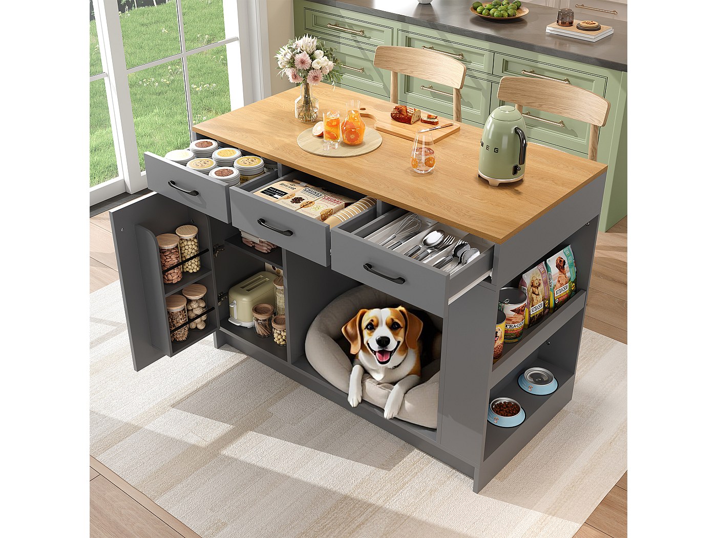 Îlot de cuisine, meuble de cuisine,meuble buffet,120 x 73 (45) x 93 cm... Les tubes en acier avec porte-serviettes et porte-épices sont stables et durables. Îlot central mobile : Cinq roulettes pivotantes à 360 degrés vous permettent de vous déplacer facilement entre la cuisine, la salle à manger et le salon. îlot Central Noir Amovible Îlot De Cuisine Moderne, Meuble De Cuisine Pour Poubelles, Buffet, Table à Manger Meuble Cuisine Chariot Plan Rabattable Rangement Table pliante : Peut être utilisée directement comme table à manger pour la préparation des repas quotidiens. La table rabattable est très pratique et permet un gain de place considérable. Robuste et durable : Les poignées chromées des tiroirs et des portes sont non seulement esthétiques, mais aussi résistantes à la rouille Dimensions du produit : L'îlot central mesure 137,9 cm de long, 73 cm de large et 92,2 cm de haut, offrant un espace généreux pour la cuisine. ID MARKET Buffet de cuisine 120 cm CINA 6 portes + tiroir noir et plateaux façon hêtre pas cher