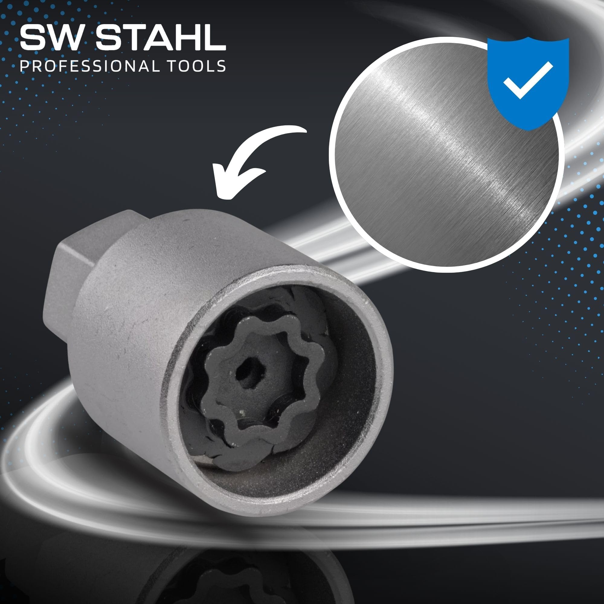 Outil Déverrouillage Roue De Secours SW-Stahl 02385L Module D'outils De Desserage, Serrure De Jante Kit Sécurité Jante SW-Stahl 02385L Jetzt kaufen! - SW-Stahl 02385L-18 Felgensicherung/ Felgenschloss - A SW-Stahl huile adaptateur pour appareil de Haldex VW-Audi avec M10 x 1... Comment savoir quel adaptateur ou embout convient à quel verrou de jante ? Les constructeurs automobiles utilisent différents types. Cela peut également être le cas pour les modèles similaires. Alternativement, ces informations sur le numéro du véhicule peuvent être demandées au constructeur/concessionnaire. De l'ensemble 02385L L'adaptateur de sécurité de jante, du kit 02385L, est l'outil parfait pour desserrer les écrous de jante lors du changement de roue. S'ils sont correctement appliqués, les jantes en alliage et les serrures d'origine ne seront pas endommagées. L'écrou de jante est fabriqué en acier au chrome vanadium robuste. SW-STAHL Verrouillage de la Jante Adaptateur 312 Pour Mercedes-Benz 02385L-12 Cette fiche produit a été automatiquement traduite. Si vous avez des questions, n’hésitez pas à nous contacter