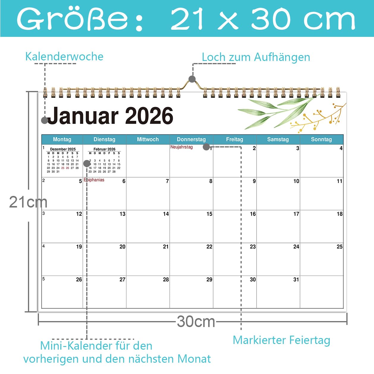 Calendrier Magnetique Frigo AEYAKA Calendrier Mural 2025-2026, Planificateur Mensuel Pour 16 Mois, De Septembre 2025 à Décembre 2026, Format A4, Avec Jours Fériés Et Zone De Notes, Design Floral, Allemand Format A4 Design Floral Calendrier mural Say it with Flowers 2025 Rifle Paper Co - Merci Léonie Achetez AEYAKA Calendrier mural 2025 2026 - 21 x 30 cm - Format A4 - 16 mois de septembre 2025 à décembre 2026 - Calendrier mensuel à suspendre avec aperçu des vacances - Espagnol Il est idéal comme calendrier familial, calendrier de bureau ou calendrier scolaire pour les étudiants. Un cadeau spécial à partager avec vos amis et votre famille. Vue d'ensemble claire du mois : couvre 16 mois, de septembre 2025 à décembre 2026, avec marquage clair des jours fériés et des vacances scolaires en Allemagne. AEYAKA Calendrier mural 2025, mensuel à suspendre avec aperçu des vacances, calendrier mural allemand : ce calendrier mural n'est pas seulement fonctionnel, mais aussi une belle décoration pour votre mur. Aperçu du mois précédent et du mois suivant : mini calendriers du mois précédent et du mois suivant sur chaque page pour une planification facile. Beaucoup d'espace pour écrire : champs quotidiens généreux avec section supplémentaire pour les priorités, les notes, les anniversaires ou les rendez-vous. Parfait pour la maison, le bureau ou l'école. AEYAKA Calendrer 2024-2025 Calendrer Mural, 30 cm x 43 cm Franças...