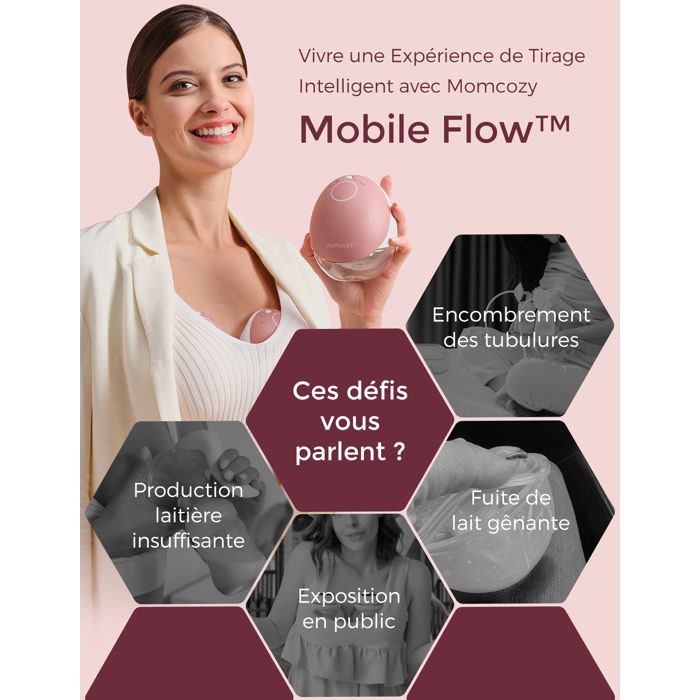Une étape de stockage, garde le lait propre. Pas besoin d'atteindre votre soutien-gorge. Pourquoi choisir Momcozy Mobile Flow ? Dépannage et politique après-vente Vous pouvez regarder les vidéos liées pour vous aider à résoudre le problème. Pompe à Lait 15 Niveaux Personnalisable Momcozy Tire-lait Mobile Flow Mains Libres, Application M9 Contrôle Discret Avec Multi-modes Personnalisés Et 15 Niveaux, Stockage Indépendant Du Lait Maternel, Tire-lait Portable M9 24 Mm (gris, 2 Collecteur Lait Intégré Rangement Pratique Si vous avez des questions, vous pouvez nous le dire à tout moment, nous fournirons à chaque client un service satisfaisant., Bon shopping ! Créez votre rythme en fonction de votre confort et de vos préférences. Une charge pour une journée. Seulement 4 pièces à nettoyer. Momcozy Tire-lait V2 Ultra Léger $ Mains Libres, Pompe Portable Enregistrez chaque rendement en lait maternel pour suivre votre historique de pompage. Vous pouvez également profiter des modes personnalisés et 2 modes spécialisés (soulagement du lait + boost de lait) depuis votre téléphone. Passez votre vie d'allaitement plus facilement Il suffit de le fermer avec le couvercle en silicone et de le mettre dans le sac ou le réfrigérateur. Contrôlez le débit mobile amélioré avec l'application MomComfort pour démarrer, mettre en pause, faire le pompage et passer à différents réglages. Pas besoin de vous étirer dans votre soutien-gorge! Enregistrez chaque rendement de lait maternel pour suivre votre historique de tire-lait. Mieux connaître soi-même, tirer son lait à votre façon 15 niveaux, Conservation du lait maternel de manière indépendante, 24mm (Rouge, 1 Pièce). 246. Momcozy Tire-Lait Mains Mobile Flow | M9, Contrôle discret de l... Multi-modes : choisissez parmi 3 modes réguliers (stimulation + expression+mixte) sur le moteur de la pompe. Il prend en charge jusqu'à 15 niveaux d'aspiration sous chaque motif. Plus forte et plus silencieuse : notre pompe de 3e génération offre une efficacité de pompage améliorée avec un bruit réduit. Rangement pratique : fabriqué en Tritan, un matériau sûr, durable et respectueux de l'environnement. Pour la plupart des mamans : le tire-lait portable momcozy offre 4 tailles (17/19/21/24 mm) et un sac à main de rangement exquis. Vous trouverez toujours votre mode optimal