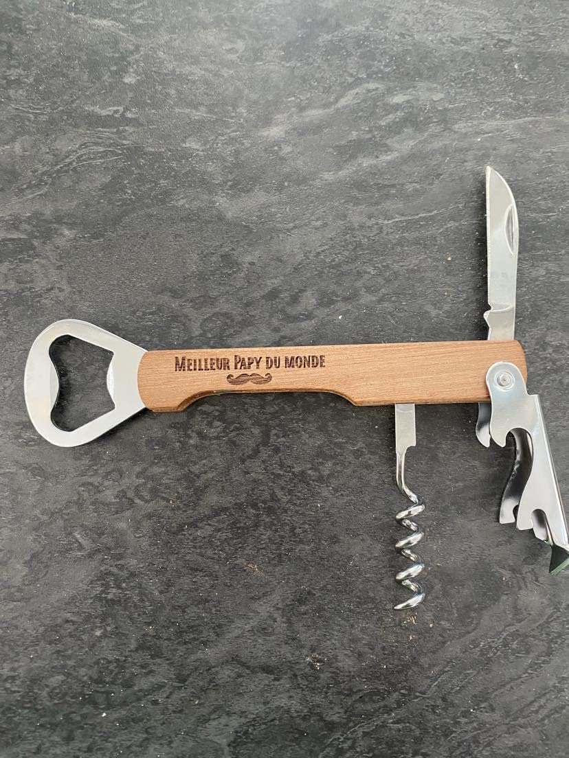 Limonadier personnalisé / Ouvre bouteille couteau Tire Bouchon Couteau de sommelier idéal pour ouvrir toutes les bouteilles de vin, les bouteilles de bières ou toute autre boisson avec facilité, un must-have pour tous... Tire Bouchon Limonadier Papy Ouvre Bouteille, Limonadier, Tire Bouchon Meilleur Papy Du Monde Idée Cadeau, Papy, Grand Père, Anniversaire, Fête, Noël,vin, Bière, Papi Tir Tir Ne cherchez plus le cadeau idéal pour votre Papy. Cadeau parfait pour votre papy, idéal pour toutes les occasions: anniversaire, fête, Noël Ouvre bouteille, limonadier, tire bouchon Meilleur Papy du monde idée cadeau, papy, grand père, anniversaire, fête, Noël,. [Y299] Images Couteau de sommelier idéal pour ouvrir toutes les bouteilles de vin, les bouteilles de bières ou toute autre boisson avec facilité, un must-have pour tous les amateurs de vin.Cadeau parfait pour votre papy, idéal pour toutes les occasions... Il sera sûr de l'adorer et de se remémorer tous les bons moments passés en famille. Design unique avec la gravure 'Meilleur Papy du monde', un souvenir gravé qui plaira à tous les grands-pères Un accessoire polyvalent qui peut également être utilisé comme décapsuleur, limonadier ou couteau de sommelier, idéal pour tous les moments, à la maison, en extérieur ou lors de barbecues Fabriqué en bois de qualité et en acier inoxydable durable, cet ouvre-bouteille est à la fois solide et pratique