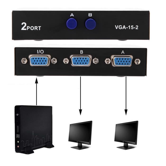 VGA Switch Box 2 PC to 1 Monitor Splitter VGA 2 in 1 out 2 Port Switcher Support VGA/XVGA/SVGA/UXGA Multi Sync Display Switch Two Way VGA Vedio Switch for PC TV Monitor commutateur vga Câbles VGA Splitter Box VGA 2 Port 2 Entrée 1 Sortie Image-vidéo Switcher pour 2... Splitter VGA 1 Vers 2 2 En 1 Sortie VGA Switcher Splitter Synchronisation Des Données Commutateur De Moniteur VGA Splitter VGA Prend En Charge L'affichage VGA, XVGA, SVGA, UXGA Et Multisync, Plug And Play Play And Charge Spécification : Type de produit: VGA Switcher Port: 3 VGA femelle standard (2 en 1 sortie) Répartiteur VGA: prise en charge (1 sur 2 sorties) Taille de l'emballage: env. Large compatibilité - Prend en charge les écrans VGA, XVGA, SVGA, UXGA et Multisync. 2 Ports VGA Switch Fournit une bande passante jusqu'à 250 MHz pour une clarté vidéo, prend en charge les résolutions VGA Le commutateur VGA sans perte de... 12 * 8 * 3 cm/4,7 * 3,1 * 1,2 pouces Poids du paquet: 156 g/5,5 oz Liste des packages: 1 * commutateur VGA Aucune perte de données - Transmet complètement les données sans perte de données. Transmission de données rapide - Adoptez une vitesse élevée pour obtenir une transmission de données ultra rapide. Plug and Play - Ce sélecteur VGA prend en charge le plug and play.