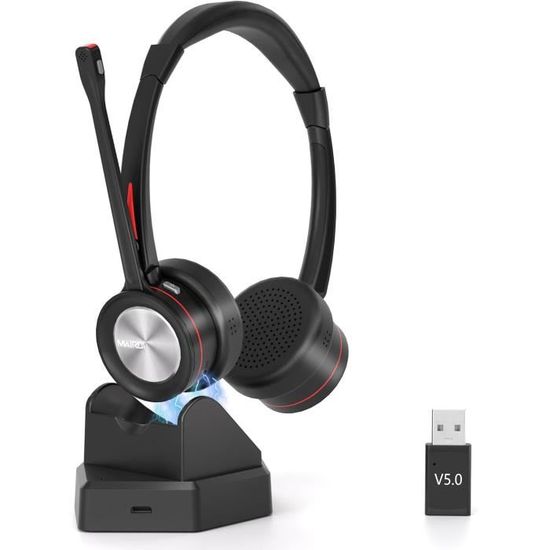 Léger, confortable et portable toute la journée : les coussinets d'oreille ergonomiques en cuir protéiné souple assurent un confort optimal, même après de nombreuses heures. Casque Réunion Réduction Bruit Casque Mono Sans Fil Avec Microphone De MediaRange Télétravail Centre D'appels Idéal pour le bureau à domicile, les réunions en ligne et les centres d'appels, votre voix reste claire et claire, même dans des environnements bruyants., Adaptateur Bluetooth 5., 2 et USB-A - Connexion stable pour tout appareil : notre casque Bluetooth 5., 2 PC est livré avec un adaptateur Bluetooth USB-A - Idéal pour les ordinateurs ou ordinateurs portables sans Bluetooth intégré. Nos couteurs Bluetooth sont parfaits pour profiter de la musique ou des appels professionnels et ofent une performance sonore exceptionnelle dans n'importe quel environnement Autonomie extra longue : jusqu'à 40 heures : oubliez la charge constante. Notre casque Bluetooth offre jusqu'à 40 heures d'autonomie avec une seule charge, idéal pour les longues journées de travail, les voyages d'affaires ou les trajets. Casque De Jeu Sans Fil, Sans Fil, Dongle 2,4 Ghz Pour Ps4-Ps5-Pc... Aucune installation nécessaire. La dernière technologie Bluetooth 5., 2 offre une transmission plus rapide, des connexions plus stables et une latence minimale. Charge rapide via USB-C – sans station de charge. Casque De Jeu Sans Fil, Sans Fil, Dongle 2,4 Ghz Pour Ps4-Ps5-Pc Il suffit de le brancher et de l'utiliser. Parfait pour le bureau, le bureau à domicile, l'apprentissage électronique ou la musique en déplacement.