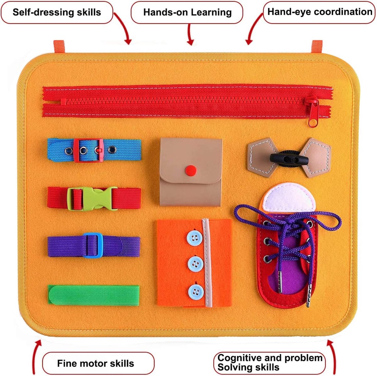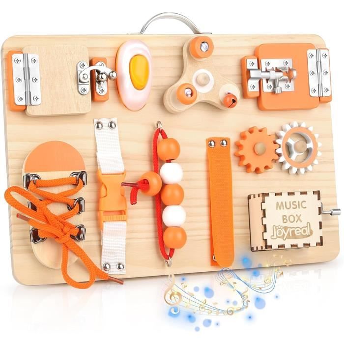 10 en 1 Française Busy Board Jouet Montessori 2 Ans, Ferme Des activités telles que la boutonnière pieuvre améliorent la coordination œil-main, tandis que les pages de l'horloge et du calendrier favorisent les capacités cognitives. Parcours Motricité Bébé Montessori Jouet Montessori Pour Enfant 2 Ans,Tableau D'Activitu00e9s Busy Board Puissance 4 Jouer et apprendre:Cette planche sensorielle aide les tout-petits à développer des compétences importantes de manière ludique. Parfait pour développer la motricité fine, la coordination main-œil et la logique des tout-petits. En bois naturel avec bords polis pour la sécurité. Portable... Avec 35 activités différentes - fermetures éclair, lacets, boutons, horloge, alphabet, chiffres… - il développe la motricité fine tout en s'amusant. Les... Parfait pour occuper les enfants lors des trajets en voiture, en avion ou dans des environnements calmes sans écran Le tri des formes, les puzzles et les jeux d'enfilage de chiffres augmentent la reconnaissance et l'imagination Cadeau parfait et satisfaction garantie:Notre tableau de bureau Montessori est fabriqué avec soin et qualité et présente un joli motif et un alphabet animal sur les enveloppes. Cette planche de bureau pour tout-petits est conçue pour enseigner aux enfants les compétences de base en jouant et les occuper pendant des heures tout en développant des capacités motrices fines essentielles Jouet de voyage sûr et portable : notre planche Busy Board est fabriquée en tissus doux et non toxiques et en feutre et sans danger pour les tout-petits âgés de 1 à 3 ans. Jeu de Montessory 35 en 1:Notre tableau d'activités innovant pour tout-petits offre 35 activités passionnantes, y compris des fermetures éclair, des lacets, des ceintures, des boutons, de l'alphabet, des montres et des compteurs de doigts.