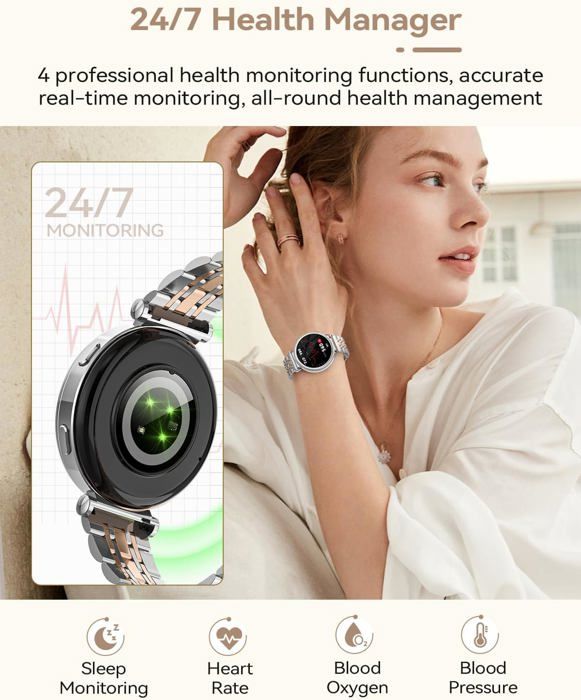 Montre Fitness Santé Sommeil Fréquence Cardiaque Montre Connectée Femme, 1,27" HD Smartwatch Femme Avec Appel Bluetooth Montre Connectée Bracelet Maille Silicone anyloop ontre Connectée Hoe Fee avec Appel Bluetooth,ontre de anyloop ontre Connectée Hoe Fee avec Appel Bluetooth,ontre de... 📞 Appels Bluetooth - Prend en charge les appels Bluetooth, avec un microphone et un haut-parleur de haute qualité intégrés pour une conversation claire. Recevez des notifications de messages et restez connecté à tout moment. 🏃♀️ Plus de 100 Modes Sportifs - Offre une large gamme de modes sportifs, enregistre vos données de manière précise et synchronise en temps réel, vous aidant à atteindre vos objectifs de fitness. Le bracelet en maille est élégant et raffiné, tandis que le bracelet en silicone est doux et confortable, parfait pour les activités sportives et l'usage quotidien. 🌸 Gestion de la santé féminine - Surveillance de la fréquence cardiaque, du sommeil et du cycle menstruel, vous aidant à mieux gérer votre santé. 👗 Cadrans Personnalisables et Fonctionnalités Pratiques - Plus de 160 cadrans au choix, personnalisables, et intègre des fonctions courantes telles que l'alarme, le chronomètre, la météo, etc., , facilitant votre quotidien. 📧 Compatibilité étendue - Compatible avec les appareils Android et iOS, un cadeau parfait pour vous-même ou vos proches, avec une garantie après-vente d'un an. fitonyo ontre Connectée Fee,1.29 Écran Tactile Sartwatch,120...