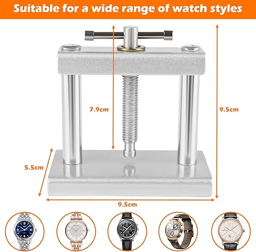 Fermez le couvercle arrière et le kit est prêt à l'emploi. Outil Horloger Amateur Presse De Boîtier Montre, Outil Montre Pour Fermeture La Table Arrière Kit Presse Avec Matrices Caractéristiques : par rapport aux presses d'enseignement coudées ordinaires, notre presse à couvercle de montre utilise une force verticale, de sorte que le bras de force et le levier sont en ligne droite, ce qui maximise la force ; en même temps, le levier vertical minimise la résistance, ce qui rend nos outils plus efficaces en travail. Montre Réglable Ouvreur Coque Arrière Presse Plus ... – Grandado MATÉRIAU DE HAUTE QUALITÉ : Le presse-boîtier est fabriqué en métal de haute qualité avec une base solide, une bonne stabilité, ne rouille pas facilement et est durable. MOULE EN PLASTIQUE : 12 pièces de joints de tailles différentes sont fabriquées en ABS de haute qualité, robuste et durable, résistant à l'usure et anti-construction, avec des bords polis lisses et sans bavures, ce qui peut mieux protéger votre montre contre les dommages. Presse de Boîtier Montre, Outil pour Ouvre et Fermer Boitier Montre... CONTENU DU PRODUIT: Ce kit de remplacement de pile de montre comprend une presse à boîtier et 12 joints de tailles différentes. L'ouvre-montre rotatif amélioré est plus stable et plus grand pour une prise en main plus confortable ; Le nouveau presseur de montre est plus stable, plus précis et moins exigeant en main-d'œuvre, de sorte que même les femmes peuvent faire le travail facilement. PRATIQUE : L'outil de montre est facile à utiliser et est livré avec un ensemble complet d'outils, même les débutants peuvent réparer leurs montres par eux-mêmes sans avoir à se rendre dans un atelier de réparation, idéal pour la réparation de montres et le remplacement de la batterie. Kit Horloger Outil De Presse De Fermeture De Boîtier Arrière De Même les débutants peuvent réparer leurs montres eux-mêmes sans devoir se rendre dans un atelier de réparation de montres. FACILE À UTILISER : choisissez deux moules appropriés, vissez-les sur l'outil de pressage, placez la montre sur les moules et appuyez enfin sur la poignée en la tournant.