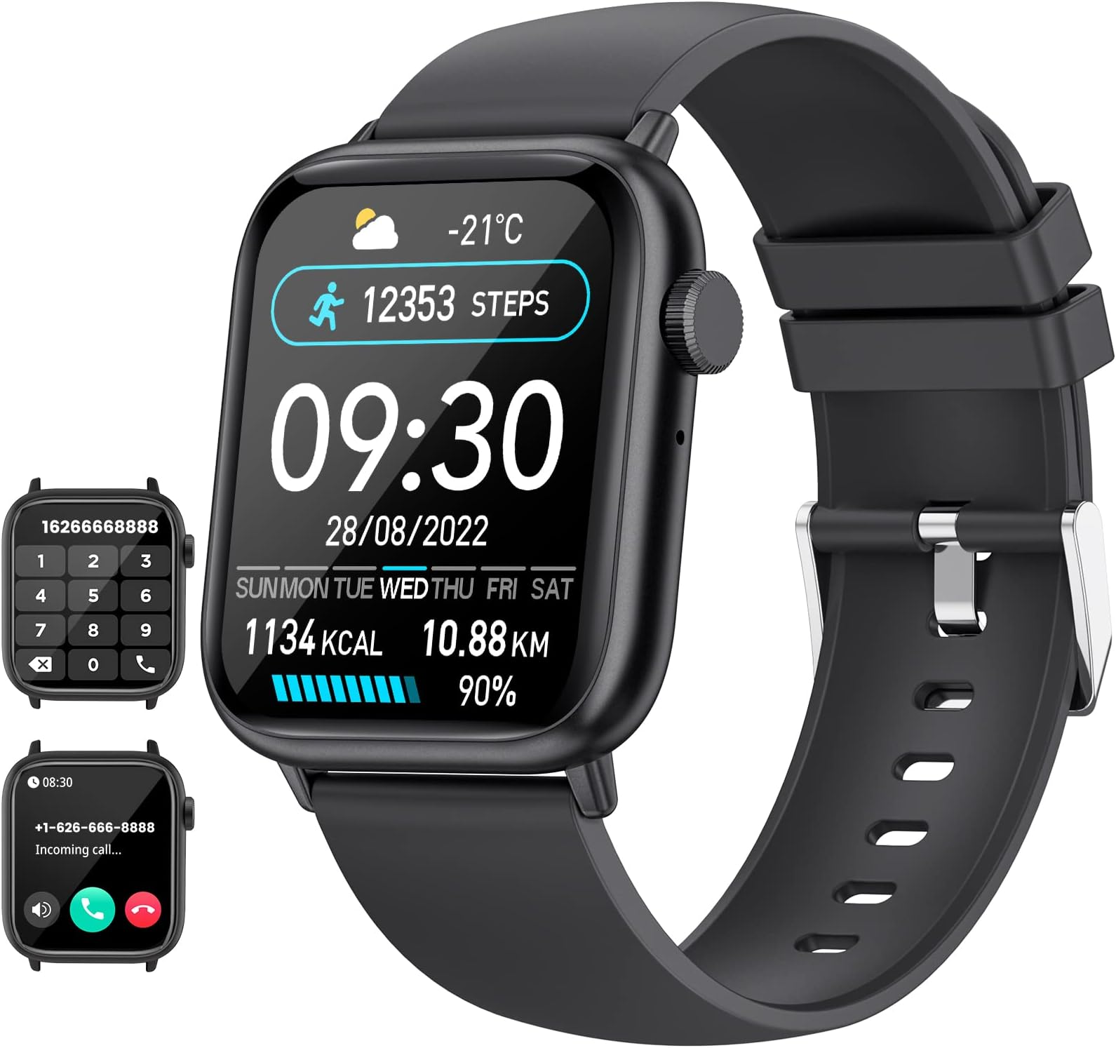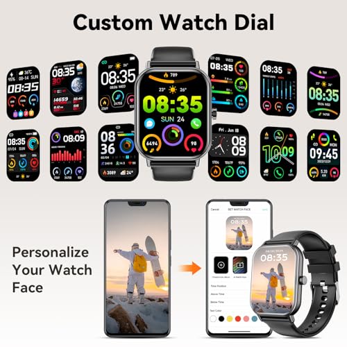 Montre Connectée Homme Femme, 1.91 Smartwatch avec Appel Bluetooth Avec une performance étanche de niveau IP68, cette montre sport peut protéger des éclaboussures, de la pluie et de la sueur. Smart Watch Montre Sport 110 Modes Cardio Montre Connectée 1.85 HD - Appel Bluetooth IP68 110 Modes Sport Montre Sport Cardio Fréquence Montre étanche IP68 Sport Cette montre connectée femme sport peut non seulement remplacer les différents cadrans de montre intégrés (100+ styles de cadrans), vous pouvez même définir votre photo préférée comme arrière-plan et concevoir vos propres cadrans de montre uniques, ce qui rend votre montre plus personnalisée et unique. Appels Bluetooth et Rappels Intelligents: Grâce à la puce Bluetooth 5.3 améliorée, vous pouvez désormais passer, recevoir ou refuser des appels directement... Montre Connectée Homme Femmes Avec Appel Bluetooth,1.85 Smartwatch... Plus de Multifonction et Durée de la Batterie: Cette montre sport homme a de variété de fonctionnalités telles que Minuteur, Chronomètre, Fonction d'appel, Alarme, Rappel Sédentaire, Contrôle de la Musique,Prévisions Météorologiques, Réglage de la luminosité, etc. Montre connectée pour la course propose également une analyse détaillée de la qualité de votre sommeil en suivant différents cycles. Une charge complète vous offre 30 jours d'autonomie en veille et 7 jours d'utilisation, alors dites adieu aux recharges fréquentes. ), vous garantissant de ne manquer aucun message important, même dans les moments les plus chargés. Grâce à l'interprétation des données recueillies, vous pourrez mieux comprendre votre état physique. ULorsque le montre connectée homme est connecté à l'application GloryFit, la montre bluetooth homme vous alerte par vibration pour chaque nouvelle notification (SMS, Facebook, Twitter, etc.