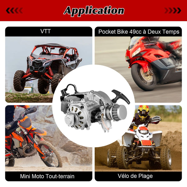 Application : pour la plupart des mini motos tout-terrain refroidies par air. 1 câble d'accélérateur. Mini moteur de course 49 cc refroidi par air capable d'atteindre 40 mph en fonction du poids et du terrain. Rapport de réduction de la boîte de vitesses: 3., 1:1 Taille de la bougie d'allumage : L7T L7TC État : neuf. Moteur monocylindre 49cc 2 temps pour mini moto tout-terrain Contenu de la livraison : 1 moteur 49 cc. Rapport de mélange essence/huile : 25:1 (essence : huile moteur à deux temps). Convient pour les mini motos de 49 cc 2 temps, les VTT ou les scooters. 🔥 Le moteur est livré avec des culasses haute performance, des bougies d'allumage, un démarreur à tractio... Taille de la bougie d'allumage : L7T L7TC Moteur compatible avec : Pour 49cc 2 temps Pocket Bike, Mini Dirt Bike, ATV ou Scooter. Remarque : Ne contient pas d'instructions, il est fortement recommandé que les professionnels installent le produit. Moto Cross 125cc Moteur 49cc 2 Temps Monocylindre Mini Moteur Air Forcé Kit Moteur Chaîne T8F 14 Dents Mini moteur de course 49 cc refroidi par air capable d'atteindre 40 mph en fonction du poids et du terrain. Le moteur est complet avec culasse haute performance, fiche, démarrage à traction en métal revêtu par pulvérisation, filtre à air et carburateur de 14 mm, manivelle équilibrée, volant d'inertie équilibré, fenêtre de piston ... Mini moteur de course 49 cc refroidi par air capable... Le moteur est complet avec culasse haute performance, fiche, démarrage à traction en métal revêtu par pulvérisation, filtre à air et carburateur de 14 mm, manivelle équilibrée, volant d'inertie équilibré, fenêtre de piston porté, unité de transmission Uprated Gear.