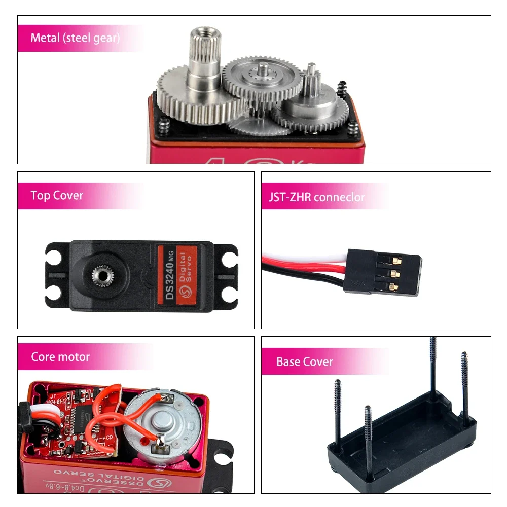 Fréquence de fonctionnement : 50-330 Hz. Servo Haute Vitesse 270 Degrés Moteur De Direction Numérique Servo En Métal à Couple élevé Servo Métal Voiture 1/5 1 lot d'accessoires à vis (comme sur les photos)., Tension : 6 V-8,4 V Fil de connecteur : 300 ± 5 mm. Contenu du paquet : 1 servo robotique numérique en métal DS5180., 1 bras servo réglable en métal 18T. Vitesse : 0,24 sec/60 degrés à (6 V), 0,21 sec/60 degrés à (7,4 V), 0,19 sec/60 degrés à (8,4 V) Hobby Fans Servo De Direction RC - Servo Numérique 12 G Avec Support De Montage En Métal Et Bras 15t Pour Rc Axial Scx24 Pieces De Mise A Niveau De Modele De Voiture Et Bateau Mode de conduite : PWM. Couple de décrochage (à verrouillé) 85 kg/cm à (6 V)., 98 kg/cm (7,4 V)., 105 kg/cm (8,4 V). Degré de fonctionnement : 270° (lorsque 2500 μsec)., Marque morte : 3 μs. Plage de température de stockage : -30 ℃ ~ 80 ℃. Couple : 85 kg (6 V), 98 kg (7,4 V), 105 kg (8,4 V) 2 pcs/lot Servo 360 degrés Rotation continue Servo MG995 engrenage en... Cuque Servo à couple élevé Servo numérique de voiture G20 RC 20KG à... Tension de fonctionnement : 6 ~ 8,4 V CC. Largeur d'impulsion : 500-2500 usec Position neutre : 1500 µsec Degré de fonctionnement : 0° (lorsque 500 μsec). Vitesse de fonctionnement (sans charge) 0,24 sec/60° (6 V)., 0,21 sec/60° (7,4 V)., 0,19 sec/60° (8,4 V). Description : Type de moteur : moteur CC.