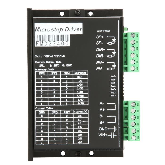 Pilote pas à pas numérique 0.3-2.2A 10-30VDC pour moteur pas à pas Nema 8, 11, 14, 16, 17 - DM320T|STEPPERONLINE Pilote de moteur uniquement, la démonstration des autres accessoires sur la photo n'est pas incluse! Protection Surtension Surintensité Moteur Pas à Pas Unipolaire [Arduino Driver M860 DM860 Sous-tension, courte tension, surtension, protections contre les surintensités. Le pilote sert d'intermédiaire entre un contrôleur (tel qu'un microcontrôleur ou un automate programmable) et le moteur pas à pas, traduisant les instructions de mouvement en signaux électriques appropriés CET - Pilote de moteur, pilote de moteur pas à pas professionnel... Compatibilité TTL et entrée d'isolation optique. Ce pilote de moteur pas à pas offre une protection contre les surpressions, les surintensités et les courts-circuits. Le courant réactif automatique est réduit. Technologie d'auto-réglage de la vitesse. Technologie de réglage automatique. Fonctionnalités:Peut être adapté à un environnement plus strict.