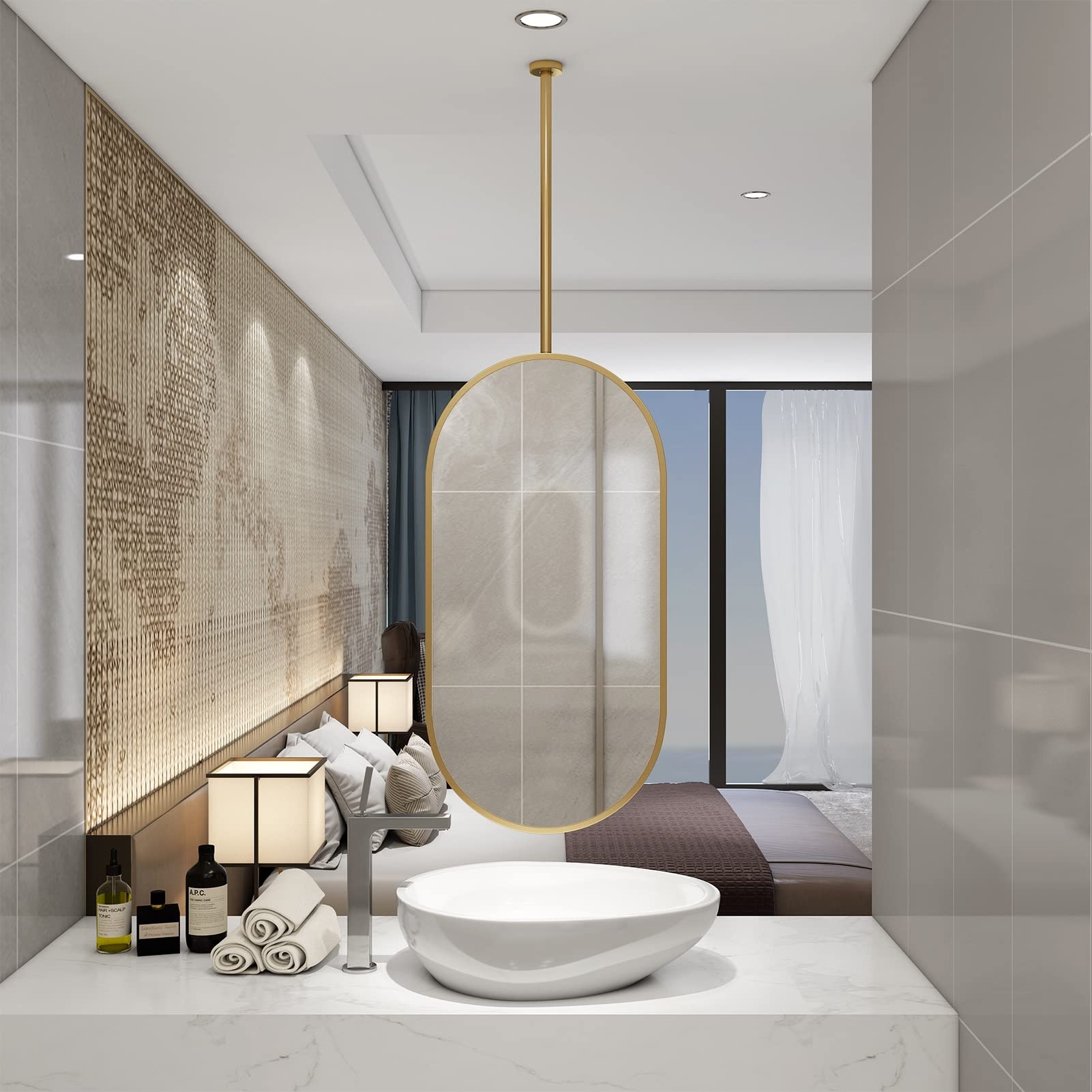 La tige de suspension rotative à 360° est personnalisable. Miroir lumineux tricolore : Notre miroir suspendu est équipé d'une bande lumineuse tricolore. Il suffit de fixer la tige de suspension au miroir, de marquer l'emplacement d'installation au plafond et de percer des trous dans le mur. (La taille de la tige de suspension peut être personnalisée ou conçue comme une tige télescopique. BERNSTEIN - Miroir rond salle de bain éclairage LED ∅80cm cadre Anthracite mat anti-buée for toute personnalisation, veuillez nous contacter par e-mail., ) Son cadre et sa tige de suspension en fer assurent une structure stable. Miroir mural rond à suspendre 75x75cm – Miroir décoratif pour salon... OCCASIONS APPLICABLES : Il peut être utilisé dans les salles de bains, les hôtels, les toilettes, les salons, les dressings, les vestiaires, les porches, les chambres, les entrées ou d'autres endroits for répondre aux besoins de différentes personnes Ce miroir de plafond utilise un miroir argenté flottant haute définition aux images réalistes, offrant une vision claire. Tension d'alimentation : 110-260 V, puissance : 6000 K. Grand Miroir à Suspendre Miroir De Salle De Bain Rond À Motifs 500 Mm Miroir Mural, Miroir De Maquillage Anti-Buée Grand Miroir Décoratif Chambre Dressing AICA Miroir lumineux 80cm rond, 3 couleurs anti-buée dimmable... Fixez ensuite le miroir avec des vis et assurez-vous qu'il est bien fixé for terminer l'installation.