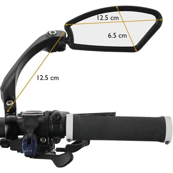 Le retroviseur velo electrique adopte une version améliorée avec base à charnière, dont l’anneau de fixation du guidon peut être ouvert sans démonter le guidon. Le rétroviseur velo utilise une base en aluminium CNC haute résistance et un matériau ABS de qualité, robuste, durable, antirouille et anticorrosion, résistant aux intempéries et offrant une protection fiable pour votre conduite Rétroviseur Moto Guidon Greyoe Retroviseur Moto, Retro Moto, 2 Rétroviseurs Moto ABS Rétroviseurs Guidon Réglables 360 Adventure Rétroviseur pour moto homologué E24, pliable à 360° avec guidon de 22 mm, vis M8/M10, compatible avec Street Dirt Bike Ebike Scooter ATV Quad... CHAMP DE VISION ÉLARGI: Le rétroviseur vélo avec son miroir de grande taille de 102 mm offre un champ de vision plus large et plus clair. Il élimine au maximum les angles morts, pour une conduite en toute sérénité, que ce soit en milieu urbain ou en course tout-terrain. E-MARK HOMOLOGUÉ: Le retroviseur moto embout de guidon a obtenu le marquage de test E24 et est conforme aux strictes normes européennes de qualité et de sécurité. Que ce soit pour un usage personnel ou comme cadeau à un ami motard, ils représentent un choix idéal L’effet grand angle du miroir convexe réduit efficacement les angles morts, assure une image stable et permet de percevoir rapidement la situation sur la route pendant la conduite, améliorant ainsi la sécurité Avec la clé fournie, l’installation est rapide et se fait en seulement 3 minutes. Grâce à l’outil fourni, l’installation se fait rapidement en seulement 3 minutes, ce qui fait gagner du temps et des efforts MIDINGCHAI retroviseur embouts de guidon améliore votre expérience de conduite et vous apporte une sécurité renforcée à chaque trajet! Soyez en conformité tout en adoptant un meilleur look avec notre sélection de rétroviseurs homologués pour moto. Prix canon et envoi rapide garanti RÉGLAGE FLEXIBLE: Le rétroviseur moto est équipé d’une rotule orientable à 360°, et le bras du miroir peut être ajusté d’environ 146°, permettant de définir librement l’angle de vue optimal. ESTHÉTIQUE RÉTRO: Les rétroviseurs moto au style rétro sont l’accessoire parfait pour les café racers. Inspiré de l’esthétique rétro des café racers, le retroviseur embouts de guidon n’est pas seulement un accessoire pratique, mais aussi une véritable décoration stylée pour votre moto. Rétroviseur moto homologué réversible Harisson Goodwood Handle - noir