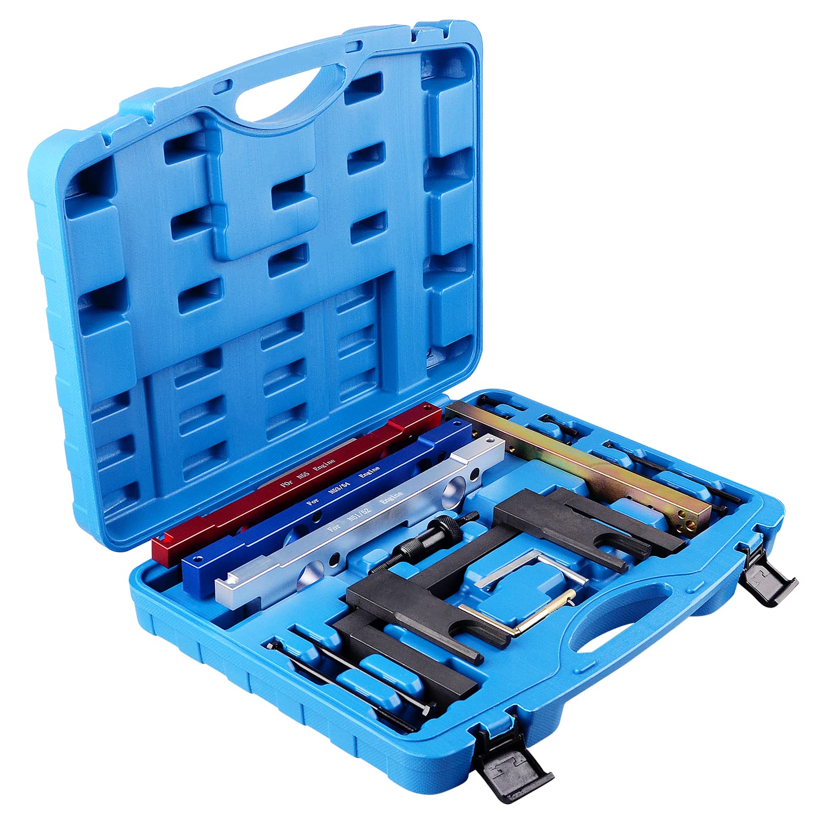 Outils BMW 117400 119340 Motoreinstellwerkzeug Steuerkette Für BMW Mini N13 N18 F20 F30 R55-56 Outil Réglage Arbre à Cames BMW Compatible avec les moteurs N13 et N18, mais aussi les F20, F30, et les Mini R55, R56, R57 et autres. Le kit est super complet : support, vis, outils de blocage et clés, le tout rangé dans une mallette pratique Castex Outils Calage Moteur, Outil De Réglage Arbre à Cames De Matériau : acier au carbone préféré, robuste - Résiste à une charge mécanique élevée, excellente résistance à l'usure - Garantit une utilisation à long terme. YAJ - Ensemble d'outils de calage moteur 8 pcs BMW Mini N13 N18... Si l'outil a des problèmes de qualité, veuillez nous contacter pour un remplacement ou un remboursement. 【Modèles applicables】Compatible avec BMW Série 1 : 114i, 116i, 118i. Remarque : ne convient pas au moteur N16, mais uniquement au moteur N13 et N18., Numéro OEM : outil de fixation d'arbre à cames (OEM : 117400), outil de serrage de chaîne (OEM : 119340), 2 goupilles de fixation de vilebrequin (OEM : 119590), 4 vis pour outil de fixation d'axe de roue. Application : outil de synchronisation pour vérifier et régler BMW, BMW MINI, idéal pour la fixation/réglage à la fois de l'arbre à cames et du vilebrequin.