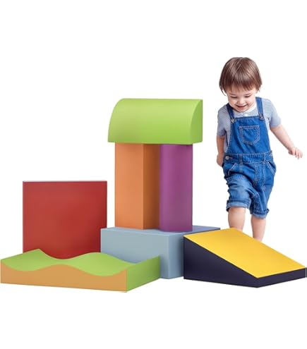 Structure motricité en mousse - Parcours de motricité Les tout-petits peuvent utiliser les blocs pour construire des mondes imaginaires, des bâtiments et des structures, stimulant ainsi leur créativité et leur imagination. Jouet Motricité 1 à 3 Ans 4 PCS Parcours Motricité Bébé, Module Motricité En Mousse, PU+EPE Haute Blocs Mousse Escalade Tout-petit SÉCURITÉ ET AMUSEMENT - Les blocs d'escalade CUPCHID sont conçus pour offrir une expérience de jeu sûre et amusante aux enfants. Ce parcours de motricité CUPCHID est juste génial pour l'éveil des tout-petits ! 🧒 Avec ses 5 blocs en mousse haute densité recouverts de tissu doux et antidérapant, il offre un terrain de jeu sécurisé où bébé peut grimper, ramper et explorer en toute sécurité Test du parcours motricité bébé CUPCHID : amusant et éducatif Le revêtement en cuir vegan est résistant et facile à nettoyer, idéal pour nettoyer les petits accidents comme les boissons renversées. Sans bords tranchants, ni bruits forts, ni textures désagréables, ils offrent une expérience de jeu sûre aux enfants à partir de 1 an. Nous garantissons l'absence de substances nocives, pour que les enfants puissent jouer en toute tranquillité et que les parents soient assurés que leurs enfants utilisent des produits sûrs et fiables. Ayant la plus grande attention portée à la sécurité et au développement de votre enfant, notre collection favorise l'équilibre et renforce la confiance en lui alors qu'il s'attaque à tous les obstacles ludiques. SÉCURITÉ ET FACILITÉ D'ENTRETIEN - Grâce à leur base antidérapante et à leur velcro solide, les blocs restent bien en place. Description du produit Ces adorables ensembles sont spécialement conçus pour les petits aventuriers de 9 à 18 mois et sont les compagnons parfaits pour leurs aventures de ramper et d'escalade.