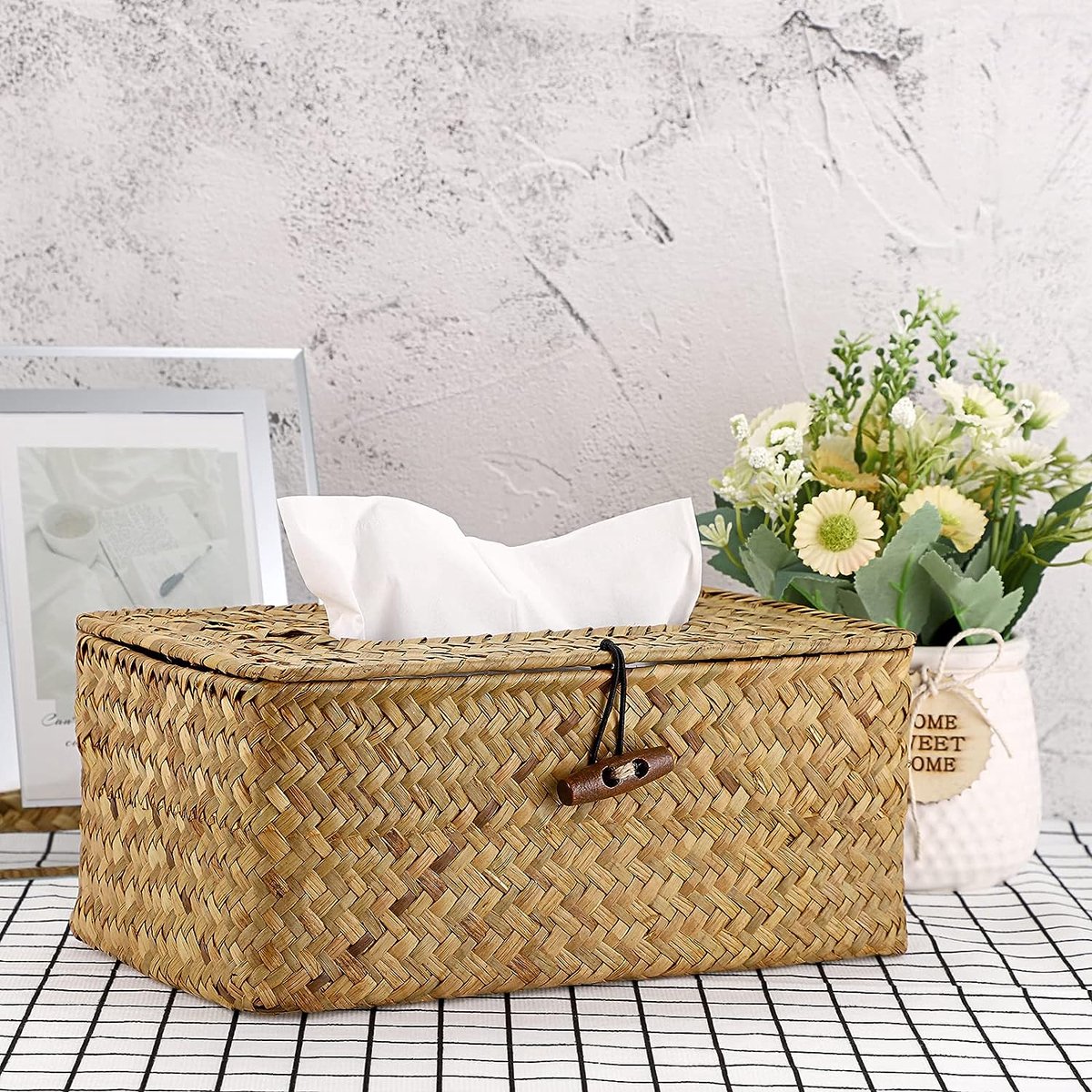 Taille L : environ 19 x 13 x 11 cm. Merci de ne commander que si vous acceptez cette marge d'erreur. Contenu du paquet : 1 boîte à mouchoirs, Solide et Boîte à mouchoirs uniquement, les autres accessoires sur l'image ne sont pas inclus. Boite Mouchoirs Papier Decorative Boîte à Mouchoirs En Rotin Couleur : conforme à l'image., Quantité : 1 pièce., Remarque : Sans emballage. Peut être utilisé comme boîte en papier et aussi une belle décoration. Description. Boîte à mouchoirs - Naturelle - Seagrass - 27x8x11cm - Design élégant - Pour ... Élégante : tissée à la main en rotin, notre boîte à mouchoirs dégage... Taille généreuse pour contenir la plupart des boîtes de mouchoirs rectangulaires carrées de taille standard ainsi que des piles de serviettes ou mouchoirs individuels. Taille généreuse pour contenir la plupart des boîtes de mouchoirs rectangulaires carrées de taille standard ainsi que des piles individuelles pour les serviettes ou les mouchoirs. La couleur de l'article peut varier de celle de la photo, en fonction des paramètres d'affichage et de luminosité de votre ordinateur., Merci. Range Mouchoirs Tissé Main 1 Pièce Boîte à Mouchoirs à Ressort Au Design D"ondulation D"eau Boite Mouchoirs Papier Decorative Voici notre boîte à mouchoirs en rotin faite main, une décoration esthétique qui rime avec authenticité, car elle allie parfaitement le naturel et une ambiance zen. Cette magnifique boîte est parfaite pour ranger et exposer vos précieux mouchoirs Rotin tissé à la main, aspect vraiment magnifique, élégant et luxueux que vous voulez.