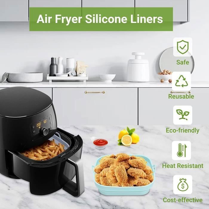 Pot de iteuse à Air antiadhésif, 2 pièces, accessoires de iteuse à Air, panier de cuisson en Silicone, plateau d'outils de cuisson, poêle à gril, accessoires de cuisine La conception spéciale répartit la chaleur plus uniformément autour des aliments, empêchant les aliments de brûlerLes poignées des deux côtés aident à prévenir les brûlures et facilitent la prise en main. Moule Air Fryer Moulinex Moule Silicone Air Fryer Accessoire, Moule En Silicone Pour Friteuse À Accessoire Four Micro-ondes Airfryer 【Matériau de qualité alimentaire】Nos doublures pour friteuse sont fabriquées à 100% en silicone de qualité alimentair, antiadhésif, sans BPA, non toxique, étanche, résistant à l'huile et 100% sain, antiadhésives et résistantes à la chaleur jusqu'à 230°C, garantissant une utilisation à long terme. Zubehör für Philips Airfryer HD9252 | Preisvergleich bei Gireich 2Pcs Accessoire Air Fryer, Pot En Silicone Pour Friteuse À Air... Attendez qu'ils soient secs après le lavage et vous pourrez les utiliser en toute tranquillité. 【Facile à Nettoyer】l'intérieur du revêtement en silicone est traité avec un processus spécial, Gardez votre friteuse à air à l'écart des résidus alimentaires et de la graisse, et protégez le pot de la friteuse à air. Des frites et du poulet aux fruits de mer, légumes et produits de boulangerie, ces doublures élargissent vos possibilités culinaires, en faisant un ajout polyvalent à toute cuisine. ❤Conseil : Veuillez mesurer votre friteuse à air avant d'acheter. Elles sont flexibles et résilientes, permettant un retournement facile pour le lavage à l'eau ou le placement dans le lave-vaisselle. 【Ajustement Parfait】2Paquet., chaque:16., 5x16., 5x7 cm (L*P*H).