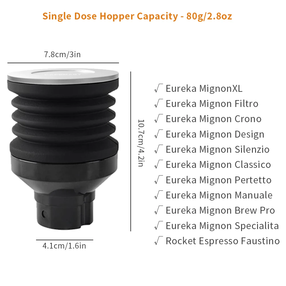 Moulin à café 2 en 1 en Silicone Design élégant, élimination Fonctionnalité 2 en 1 : cette trémie à dose unique pour moulin à café sert à la fois de trémie à grains pour moudre le café et d'outil de nettoyage pour le... Système Single Dose Mignon Moulin à Café à Dose Unique, En Silicone ABS Pour Eureka Mignon Manuale, Silenzio, Specialita, Pertetto, Design,Classico, Filtro, Crono, Brew Pro, XL Compatible Manuale Specialita 1., Fonctionnalité 2 en 1 : cette trémie à dose unique pour moulin à café sert à la fois de trémie à grains pour moudre le café et d'outil de nettoyage pour le retirer. 178 g/6,3 oz Taille du produit : env., 105x8 4mm/4., 1x3., 3in Modèle applicable : Pour Eureka Mignon Manuale, Silenzio, Specialita, Pertetto, Design,Classico, Filtro, Crono, Brew Pro, XL, le bac à poudre soufflante est également un bac à grains Liste des colis : 1 x couvercle 1 x soufflet en silicone 1 x trémie Caractéristique : 1.Fonctionnalité 2 en 1 : ce moulin à café à dose unique sert à deux grains pour broyer le café et un outil de nettoyage pour éliminer les... Il permet un contrôle précis de la quantité de café moulu, garantissant un minimum de gaspillage et une tranquillité d'esprit., 2., Design élégant et compact : comparé aux trémies à grains en plastique traditionnelles, cette trémie de moulin à café en silicone présente un design plus à la mode et peu encombrant, ce qui la rend adaptée à divers environnements tels que les cuisines, les maisons, les restaurants et les cafés., 3., Élimination efficace des déchets : la trémie à grains du broyeur agit comme un outil de nettoyage pour éliminer l'excès de poudre de café du moulin, améliorant ainsi l'efficacité de la mouture sans gaspiller le marc de café., 4., Entretien facile : en collectant et en nettoyant l'excès de café, insérez simplement la trémie sur le moulin à café et appuyez sur la boîte à air pour éliminer tout café rassis emprisonné dans la chambre de mouture., 5., Matériau de qualité supérieure : fabriquée en alliage d'aluminium de qualité supérieure, en ABS et en silicone, cette trémie est sûre et réutilisable, garantissant des performances et une fiabilité durables. Fonctionnalité 2 en 1 : cette trémie à dose unique pour moulin à café sert à la fois de trémie à grains pour moudre le café et d'outil de nettoyage pour le retirer. Entretien facile : en collectant et en nettoyant l'excès de café, insérez simplement la trémie sur le moulin à café et appuyez sur la boîte à air pour éliminer tout café rassis emprisonné dans la chambre de broyage. Élimination efficace des déchets : la trémie à grains agit comme un outil de nettoyage pour éliminer l'excès de poudre de café du moulin, améliorant ainsi l'efficacité de la mouture sans gaspiller le marc de café.