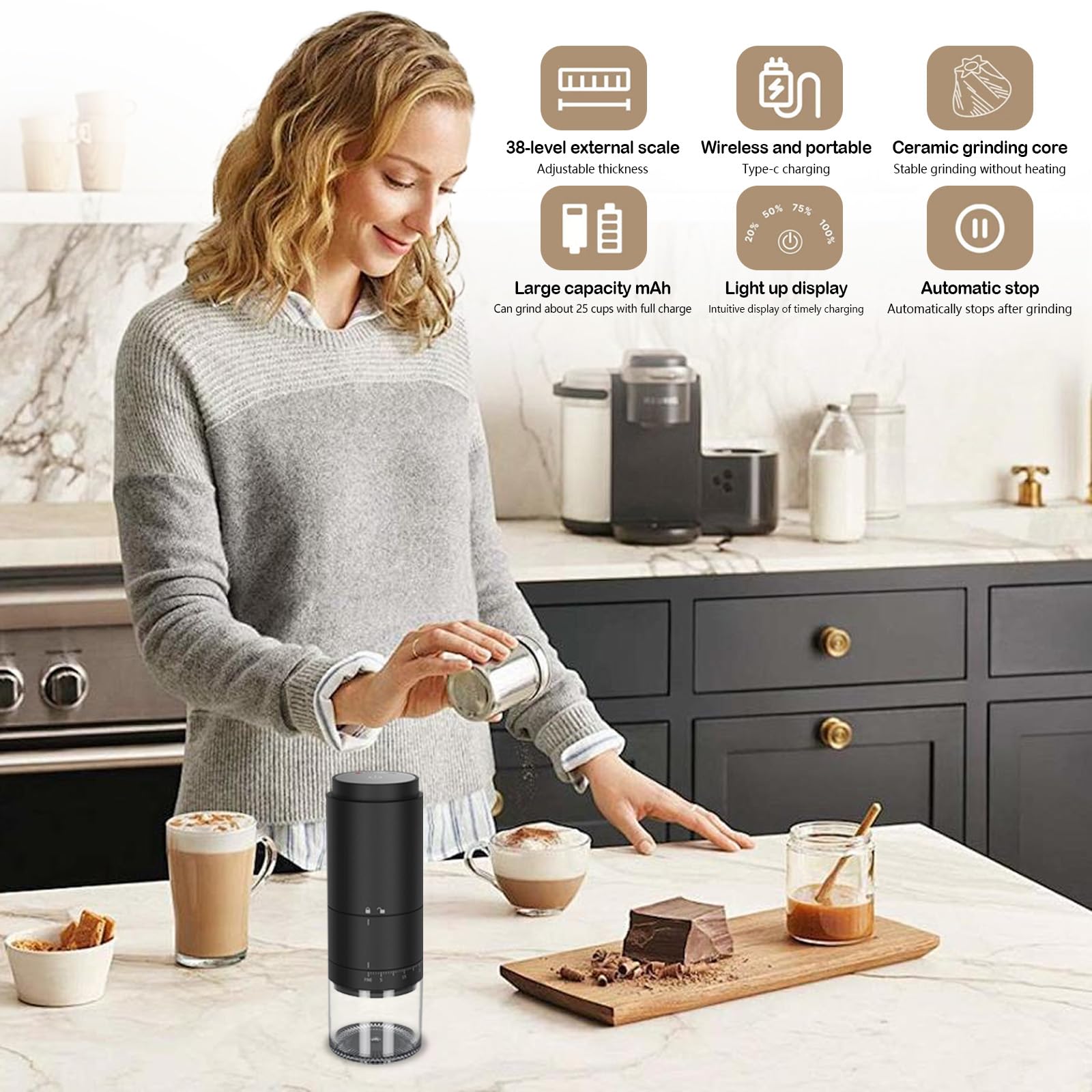 (Remarque : le manuel d'instructions joint concerne une ancienne version du produit et les données relatives à la capacité de la batterie qui y figurent sont incorrectes. 【Moulin à café électrique】Équipé d’un noyau de mouture céramique en spirale, qui se chauffe peu lors de la mouture – cela réduit la perte de saveur du café et préserve sa saveur riche et originale. Léger (450 g), compact (7x19,5 cm) et en matériau ABS résistant. Aucun réglage fastidieux ! Taille compacte, elle s’insère facilement dans n’importe quel sac à dos – idéale pour le camping, les voyages, les camping-cars, la terrasse ou le bureau. 【38 réglages de mouture réglables】Contrairement aux moulins traditionnels avec seulement 5 réglages, ce moulin propose 38 réglages de mouture précis – adaptés à différents types de café et préférences gustatives. Café Frais Moulu Bureau Camping Moulin à Café Électrique Avec Meule En Céramique Portable Rechargeable,Rugosité Réglable Machine A Moudre Le Cafe Moulin à café,AU Plug--moulin à café électrique, automatique, pour Idéal pour les voyageurs, le bureau et les amateurs de plein air. ) ✔ Contrôle de Mouture Précis à 38 Niveaux : Bague rotative pour un réglage précis - de l'espresso fin au café French Press grossier. Lumière bleue = appareil actif, lumière rouge clignotante = rappel de recharge., Tournez l'anneau de réglage externe pour choisir parmi 38 niveaux de mouture précis, de la presse française grossière à l'espresso fin. Évitez la frustration de mouture incohérente et déverrouillez un monde de saveurs, que vous brassiez à la maison, au bureau ou dans un camping de montagne ✅ DONNÉES TECHNIQUES : ✔ Matériau : ABS + Moteur cuivre ✔ Niveaux de mouture : 38 ✔ Capacité : 25 g ✔ Batterie : 2000 mAh (USB-C) ✔ Couleur : Noir ✔ Dimensions : 7 x 19,5 cm ✅ CONTENU DU COLIS : 1 x Moulin à café 1 x Brossé de nettoyage 1 x Câble USB-C 1 x Manuel (anglais) 🎯 POURQUOI NOTRE MOULIN ? Mobilité maximale + meules précises = saveur professionnelle toujours avec vous ! Le réservoir à grains amovible, le réservoir de collecte de poudre et le noyau de mouture permettent un nettoyage sans effort. 【Écran LED pratique avec fonctions intelligentes】Écran LED amélioré avec commande à un bouton, affichage en temps réel de la batterie, mesure intelligente de résistance et extinction automatique après la mouture – pas de souci de le laisser fonctionner sans surveillance. Moulin à Café éLectrique, Moulin à Grains de Café à Fraise Conique Automatique avec Fraise... 【Facile à nettoyer avec accessoire inclus】Les pièces se démontent facilement – avec une brosse à nettoyage fournie pour éliminer simplement les résidus de café moulu. Note : Ne lavez pas l’appareil principal dans l’eau – essuyez-le avec un chiffon humide. ✔ Parfait pour l'Extérieur & le Quotidien : Sans fil, facile à ranger - profitez d'un café fraîchement moulu en camping, au bureau ou en voyage !
