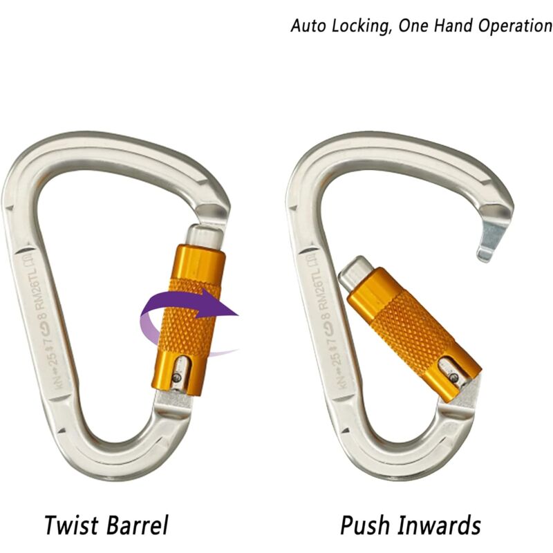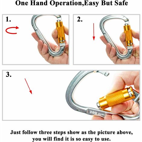 SOB Mousquetons Escalade Clips de Mousqueton à Verrouillage Automatique... 【Construit durablement pour durer】Le mousqueton durable a un revêtement antioxydant avec une surface brillante et une finition résistante aux rayures pour une longue durée de vie. 【Doigt à vis】L'écrou de sécurité texturé empêche le mousqueton de s'ouvrir accidentellement et renforce la résistance du doigt. Accessoire Alpinisme Et Via Ferrata Mousqueton En Aluminium, Pour Escalade, Hamacs, Balançoire, Camping, Randonnée, Gym Mousquetons Robustes Camping Randonnée 【Matériaux de haute qualité】Ces mousquetons d'escalade robustes sont fabriqués en aluminium 7075 de qualité aéronautique, extrêmement durables et solides. Mousquetons escalade caen (14 【Certification】 les mousquetons à verrouillage sont conformes à la norme EN12275., L'axe long de chaque mousqueton est conçu pour une charge de rupture de 28 kN (6 295 lb), l'axe court pour une charge de rupture de 7 kN (1 575 lb) et la charge de déverrouillage de 8 KN (1 800 lb). Mousqueton - VGEBY - Alliage d'Aluminium - Verrouillage Automatique - 2