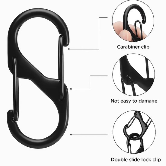 Mousqueton Alliage Aluminium 2 Pièces Mousqueton Noir,Porte Clé Mousqueton,Carabiner,avec Carabiner Alliage Aluminium Noir Idéal pour une variété d'utilisations quotidiennes, comme le camping, la randonnée, le vélo, la pêche et pour suspendre des bouteilles d'eau. Il peut également servir de porte-clés ou d'objet décoratif Porte Clé Sprookber Lot De 10 Mousquetons En Aluminium De 7,6 Cm Avec Anneau En D, Clips Mousquetons, Mousqueton à Ressort Pour Porte-clés Porte Cle Il peut également servir de porte-clés ou d'accessoire décoratif. Lot de 5 Mousqueton Noir INOX - 25KN(2500KG), Mousquetons Verrouillable... 🔗Remarque importante : Pour votre sécurité, ce mousqueton ne convient pas aux activités dangereuses telles que l'escalade ou le levage. 🔗Matériau de qualité supérieure : Fabriqué en alliage d'aluminium de haute qualité avec une conception en D, il est robuste, résistant à la corrosion et ne se déforme ni ne se casse. 🔗Polyvalent : Parfait pour un usage quotidien, comme pour suspendre des bouteilles d'eau, pêcher, faire du vélo, du camping et de la randonnée. 🔗Facile à utiliser : La boucle à écrou et le verrou à vis sécurisé empêchent toute ouverture et toute chute accidentelles.