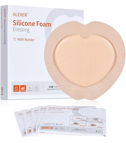 Sacral Lot de 5 panseents en ousse de silicone avec bordure, ulcère du sacru, escarres de... Design respirant : pansement en silicone - Le pansement en mousse de silicone permet un échange d'air optimal - Maintient la plaie humide et propre - Grâce à la grande capacité d'absorption des liquides, la durée de vie de chaque pansement peut être garantie et la fréquence des changements de pansement peut être réduite - Facile à utiliser : le pansement non adhésif - La taille de 5 x 5 cm est idéale pour les plaies petites à moyennes - Le bord autocollant assure un maintien sûr sans glissant, idéal pour Utilisation quotidienne et sous la douche, il a une adhérence suffisante pour adhérer au corps sans tomber ni se friser. Pansement en mousse de silicone de haute qualité : le revêtement en silicone doux et respirant offre une protection douce pour la plaie ; vous recevrez 8 pansements en mousse de silicone, chaque pansement est emballé séparément Pansement Silicone 5x5 Lot De 5 Pansements En Mousse De Silicone De 15,2 X 15,2 Cm Avec Pansement Anti-escarres Pour soulager la plaie. Elastoplast Pansements Silicone Soft XL x5 - Doux et réutilisable Pansement en mousse de silicone de qualité supérieure : le revêtement en silicone doux et respirant offre une protection douce pour la plaie ; vous recevrez 8 pansements en mousse de silicone, chaque pansement est emballé séparément Soins optimaux de la plaie : pansement anti-adhésif en mousse protège contre les dommages secondaires ; la couche de contact en silicone souple peut protéger la plaie contre les dommages secondaires lorsque le pansement est retiré et peut être ouvert à tout moment. Soin optimal des plaies : pansement anti-escarres : le pansement en mousse non adhésif protège contre les dommages secondaires ; la couche de contact en silicone souple pour la plaie peut protéger la plaie contre les dommages secondaires lorsque le pansement est retiré, et peut être ouvert à tout moment pour observer la plaie