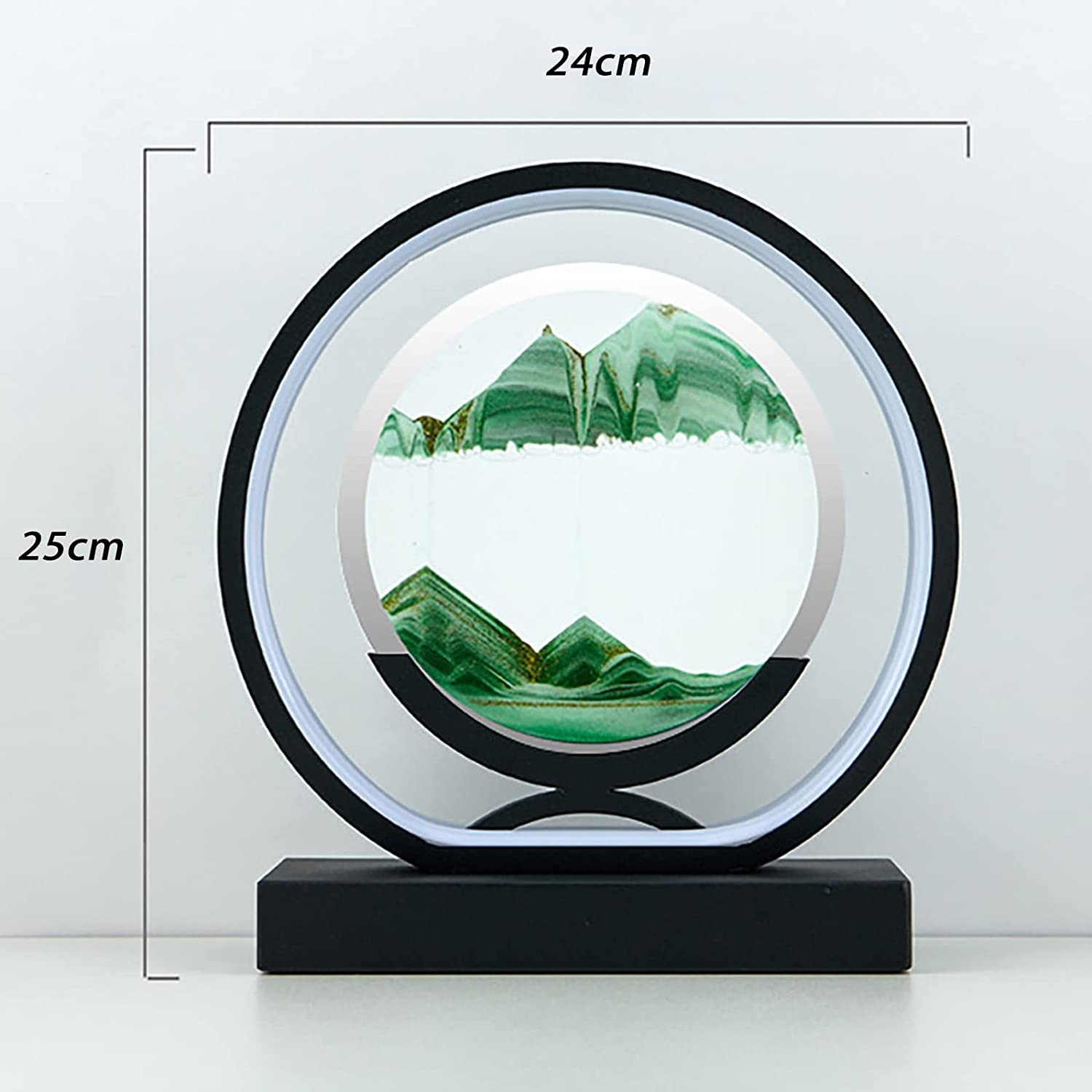 L'art des sables mouvants est un art visuel, chaque retournement peut créer une belle image. Sablier Decoratif Verre Lumineux Peint à Sable Mouvant LED 3D, Paysage Naturel 360 ° Rotation Art Créatif Sablier Salon Chambre Lampe De Chevet Sablier Rond Regarder le sable coloré tomber lentement, ce qui peut soulager le stress, détendre vos yeux, cultiver la patience. La décoration du salon a une image en constante évolution, riche en contenu. 【Apaisant et relaxant】 L'image de sable dynamique peut être tournée librement à 360, créez une nouvelle photo de sable à chaque tour, formant lentement des déserts, des océans, des montagnes de différentes formes. Parfait pour les employés de bureau, les étudiants, les créateurs d'art et les personnes qui travaillent avec des ordinateurs depuis longtemps. Lampe d'art sur sable à LED abstraite, minuteur de sable rotatif, décoration de paysage de sable, ornement de salon|Homary Étape 3 Laissez le sable couler lentement à travers les petites bulles. L'image de sable dynamique peut être tournée librement à 360°, car le sable tombe à travers de minuscules bulles d'air, le sable qui tombe forme lentement de beaux paysages tels que des dunes, des montagnes et des vallées. Sous la lumière chaude des lumières LED, les peintures de sable fluides sont plus exquises. Peut soulager le stress et la fatigue oculaire. C'est un bon choix pour Noël, un anniversaire, Halloween, la Saint-Valentin, Thanksgiving, des célébrations pour enfants et adultes. La base moderne est équipée d'une éponge antidérapante, qui fait ressortir la beauté de la peinture sur sable 3D, créant une œuvre d'art élégante et... Peinture de Sable Qui coule, Image d'art de Sable en Mouvement Verre Rond 3D Paysage de Sable de la mer Profonde en Mouvement-Bleu ; Livré entre le dimanche 11... Étape 2 Basculement horizontal rapide à 180° Remarque:Si les bulles sont petites et denses, vous pouvez contrôler l'angle de la surface de contact entre les bulles. Soyez patient et essayez plusieurs fois, utilisez votre imagination pour créer votre propre décor. 【Matériau de haute qualité】 En utilisant du verre de haute qualité, la texture de l'image est doublée, vous permettant de profiter pleinement de la beauté des sables mouvants. How to Use the Moving Sand Art? Étape 1 Tout d'abord, le sable doit se déposer complètement au fond et tracer une ligne horizontale tout en haut du sable (vous pouvez tapoter doucement à gauche et à droite, ce qui prend environ 30 minutes.