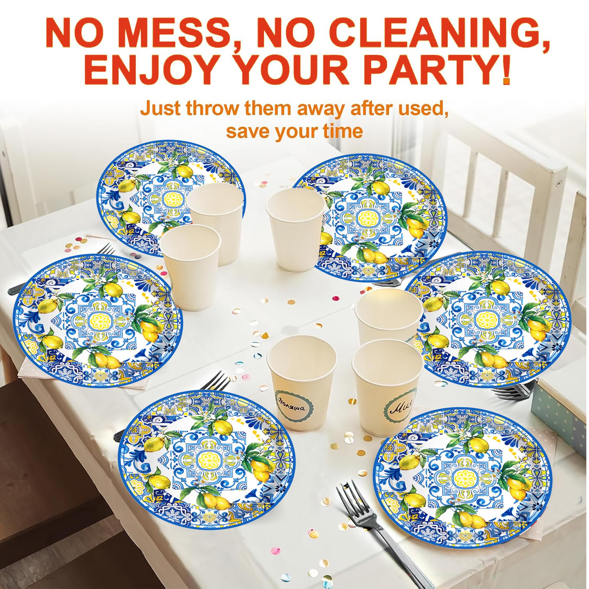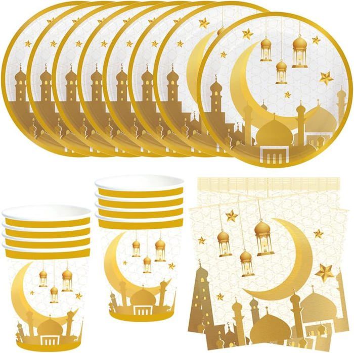 Set Gobelets Assiettes 20 Personnes Vaisselle Eid Mubarak Decoration Vaisselle De Ramadan Assiettes Gobelets Serviettes Lune Décoration Fête Citron Assiette creuse mélamine capri 20 cm Couleur citrons jaunes Ensemble de vaisselle Capri Lemon Party : vous recevrez 20 assiettes à dîner de 22,4 cm 20 assiettes à dessert de 18 cm 20 gobelets en carton de 9 onces... Nous sommes heureux de vous aider. Set de vaisselle de fête Capri Citron : 20 assiettes plates de 23 cm. Ensemble de vaisselle Capri Lemon Party : vous recevrez 20 assiettes à dîner de 22,4 cm + 20 assiettes à dessert de 18 cm + 20 gobelets en carton de 9 onces + 20 serviettes + 20 pailles + 1 nappe. Si vous avez des questions sur le produit, n'hésitez pas à nous contacter. Design unique : le design unique et mignon de citron, les motifs clairs et les couleurs vives rendent votre fête unique et créent une atmosphère de fête amusante. Il suffit de jeter la vaisselle à la poubelle après l'événement, vous aurez plus de temps pour profiter de la fête et prendre soin de votre famille, vos amis et vos invités. Utilisations multiples : les décorations de fête Capri Lemon conviennent pour les fêtes d'anniversaire des garçons et des filles, les fêtes prénatales, les fêtes de parc, les pique-niques, les fêtes d'entreprise et bien plus encore. Lot De 80 Assiettes Jetables En Carton Pour Anniversaire D'Enfant - En...