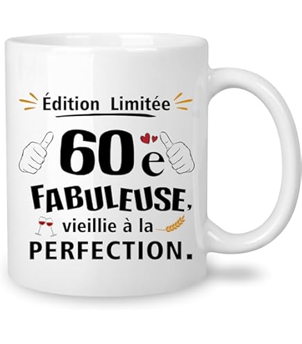 Ce mug convient aussi bien à un cadeau personnalisé femme qu’à un cadeau original couple pour les amateurs de bonne humeur. Mug anniversaire 60 ans | Tasse café humour sarcasme drôle pour cadeau original imprimé en France - Maison 🥂 cadeau 60 ans femme – Un clin d'œil amusant à offrir à une femme exceptionnelle. Tasse Céramique 330ml Message Humour Mug Cadeau Original Mug 60 Ans Humoristique - Message Drôle 'Il M'a Fallu 60 Ans Pour Devenir Aussi Génial' Mug Céramique Qualité Mug Lavable Lave Vaisselle Micro Onde Il convient à tous : que ce soit pour un cadeau anniversaire maman, cadeau 60 ans femme, ou même pour votre collègue de travail préféré. Ce mug rigolo est parfait pour faire rire à son anniversaire. Épnglé par Zaza sur Annversares humour | Dessn humorstque annversare, Ctatons... Lavable au lave-vaisselle et passe au micro-ondes. 🎈 cadeau anniversaire maman – Original et utile ! Image GIF festive et colorée de joyeux anniversaire 65 ans - télécharger sur Ce mug anniversaire est plein d’humour et de vérité. 🎁 cadeau 50 ans homme – Pour les papas ou collègues qui gardent leur esprit jeune. Une idée drôle pour les mamans modernes à l’occasion de leur 30e, 40e ou même 60e anniversaire. C’est l’accessoire indispensable pour faire sourire à la pause café ou au petit-déjeuner. Le mug qui prouve que l’âge, c’est juste un chiffre.
