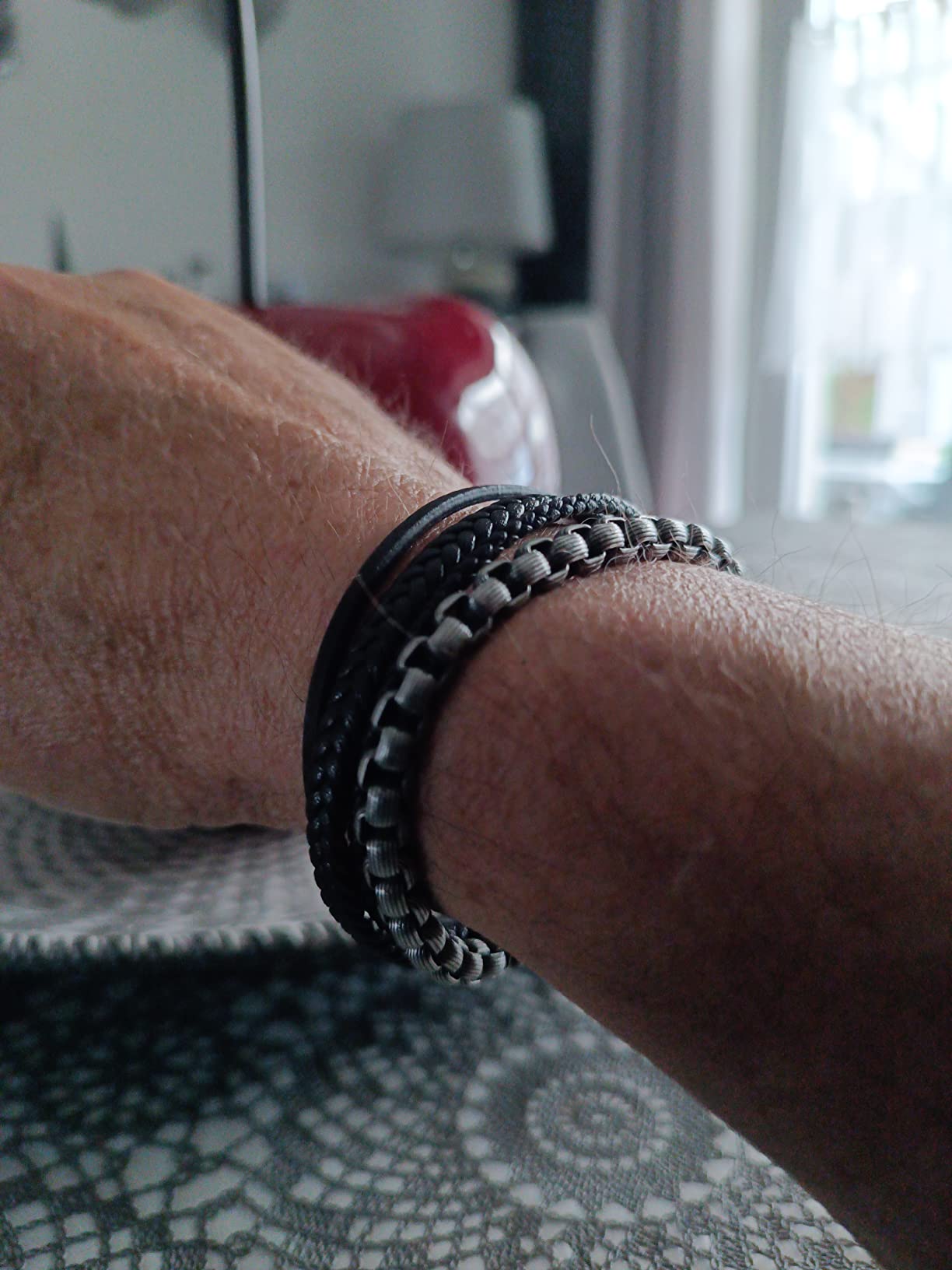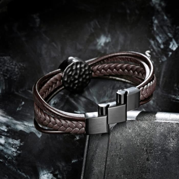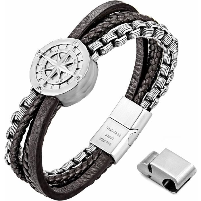 Ce bracelet pour hommes est fabriqué à partir de cuir de bœuf de qualité supérieure et d'une chaîne en acier inoxydable. Design extérieur la mode et élégant pour vous démarquer lors d'une fête ou au travail. En tant qu'accessoire branché, ce bracelet vaut vraiment la peine d'être essayé et ne manquez pas l'occasion de l'expérience. Bracelet pour homme élégant et stylé en cuir et acier inoxydable. Fermoir magnétique durable La boucle magnétique en acier inoxydable a une extension réglable de 1 cm qui garantit un port confortable sur toutes les tailles de poignets. Bracelet en pierre naturelle tissé à la main Longueur réglable Peut être porté pour la baignade et la natation Ce bracelet pour hommes est fabriqué à partir de cuir de bœuf de qualité supérieure et d'une chaîne en acier inoxydable Nous proposons une garantie de remboursement à 100 % et la livraison est gratuite dans un délai d'un mois en cas d'insatisfaction. Comment mesurez-vous la longueur de votre poignet? 1., Utilisez un ruban à mesurer doux pour mesurer autour de votre poignet., 2., Dessinez le ruban à mesurer en se chevauchant pour former un cercle complet autour de votre poignet., 3., Afficher la longueur du ruban à mesurer marquée., 4., Comparez votre mesure avec ce tableau pour déterminer la taille de votre bracelet Bracelets en cuir pour hommes Découvrez le nouveau bracelet en cuir murtoo pour homme, qui combine des cuirs sélectionnés et une chaîne robuste en acier inoxydable, idéale pour un usage quotidien. Bracelet Avec Pochette Velours Murtoo Bracelet En Cuir Tressé Multicouche Avec Fermoir Magnétique Pour Homme, 8.7", Cuir Bijou Homme Cadeau Anniversaire Durable et doux pour la peau, ce bracelet en cuir pour homme dispose également d'un fermoir magnétique avec une extension de 1 cm, ce qui le rend facile à... Le bracelet est livré dans une belle pochette et peut également être un cadeau de fin d'études parfait. Si vous n'êtes pas sûr de la taille à choisir, veuillez nous contacter pour des suggestions. Le cuir est soigneusement découpé et tressé à la main avant d'être agrémenté d'éléments tendance. N'hésitez pas à nous contacter pour toute question ou problème. Bracelet wrap pour homme en cuir marron ou noir Une excellente idée de cadeau pour la famille et les amis pour des occasions telles que la Saint-Valentin, l'anniversaire, la fête des pères, Noël et l'action de grâces. Idées cadeaux Chaque bracelet en cuir murtoo est livré avec un sac en velours et une carte - cadeau pour un rangement écologique. Ce bracelet pour homme est non seulement un bijou pour vous - même, mais aussi un cadeau parfait pour un père, un mari, un petit ami, un fils, un frère ou un ami pour un anniversaire, la fête des pères, la Saint - Valentin, Noël ou un jour spécial. Il offre un look épuré et est facile à utiliser d'une seule main, ce qui rend le bracelet pour homme facile à ouvrir et à fermer en toute sécurité.
