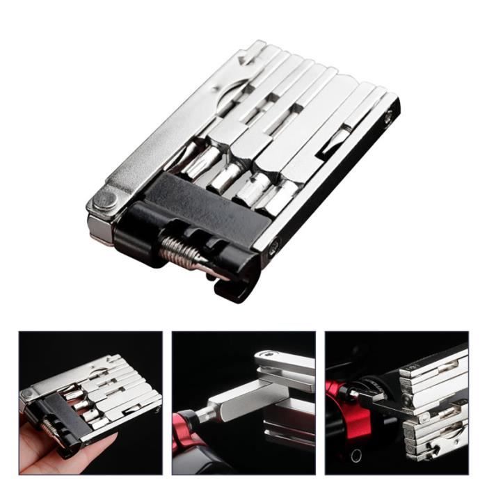 Outils de réparation vélo vélo Kit Clé tournevis chaîne Pince carbone... Il comprend un couteau à chaîne, 1 clé à feuille T25, 1 tournevis cruciforme, 7 outils hexagonaux au total 2/2.5/3/4/5/6/8 mm. Poids léger et compact : grâce à son boitier plat, le multi-outil de vélo S'intègre facilement dans votre sac. Facile à utiliser même avec des gants Kit Reparation Velo Multitool Outils De Réparation De Vélo Chaîne Clé à Rayons Hexagonaux Outil Velo Multifonction Cikonielf Dissolvant de support de pédalier de vélo Clé à chaîne de