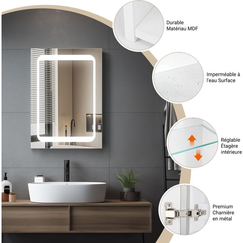 Plus besoin de fouiller avec des interrupteurs, seulement une élégance pure ! Avertissement De Sûreté Pour des raisons de sécurité, les enfants ne doivent pas grimper ou jouer avec. Armoire Chambre Avec Miroir Miroir De Salle De Bain Mural à LED Pour Armoire à Pharmacie, Blanc Mat, 1200 Mm|Homary Armoire Salle De Bain Avec Miroir Miroir de salle de bain lumineux - Miroir 120x90cm rectangulaire... Plus qu'un simple miroir, un révolutionnaire pour la salle de bain. Description du produit Détails du produit : Couleur : blanc., Matériau : MDF Tenir à l'écart des produits chimiques. Blanche, simple mais pleine de fonctionnalités - Cette armoire à miroir est le compagnon idéal pour une salle de bain organisée et élégante. Sans contact et moderne : l'interrupteur à capteur tactile rend l'allumage et l'extinction de l'éclairage un jeu d'enfant. Contenu de l'emballage : 1 armoire à miroir., 1 kit d'accessoires. Même si vous l'utilisez quotidiennement, il reste stable comme un rocher dans les vagues. Remarques PREMTURE : Pour des raisons de sécurité, les enfants ne doivent pas grimper ou jouer avec. Avec ses quatre étagères en verre réglables, cette armoire salle de bain miroir 120 cm permet de personnaliser l’agencement intérieur selon vos besoins. Rangez vos flacons, cosmétiques et accessoires en toute simplicité, tout en gardant votre plan de toilette parfaitement dégagé Il suffit de taper pour illuminer votre salle de bain comme un spa de luxe. Espace de rangement et style en un : les doubles portes cachent habilement vos ustensiles de salle de bain, tandis que l'étagère supérieure est parfaite pour vos essentiels quotidiens. 1 mode d'emploi (allemand, anglais, français). Armoire avec éclairage LED GORINIA MULTI : Miroir Pour Toi