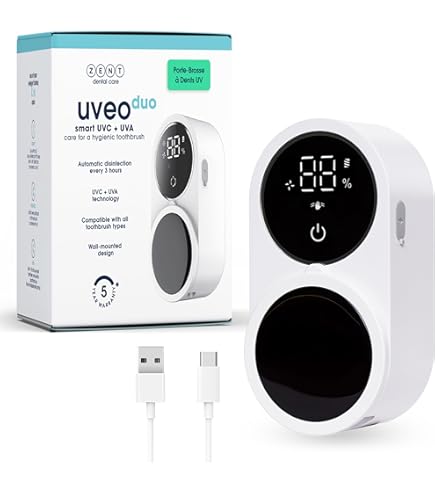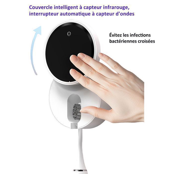 Support Brosse A Dent Uv Support Mural Pour Désinfectant Pour Brosse à Dents, Support Désinfectant Brosse à Dents LED Support de nettoyage pour brosse à dents mural avec alimentation USB et Support de nettoyage pour brosse à dents mural avec alimentation USB et... Équipé de lampes doubles UVC et UVA pour une stérilisation et un séchage à 360°. Avec une batterie 1000mAh, il désinfecte pendant 99s toutes les 4h sans charge (puis passe en veille), et pendant la charge, il désinfecte toutes les 2h pendant 99s et sèche pendant 30min (le séchage fonctionne uniquement lors de la charge). 【Capteur intelligent】Le stérilisateur UV automatique Ankilo possède un capteur : un geste de la main ou un léger toucher sur le interrupteur active/désactive la lumière UV. Porte-Brosse à Dents électrique avec Fonction Séchage Facile à utiliser et évite la contamination croisée. 【Affichage LED intelligent】L'écran numérique LED montre en temps réel l'état de la batterie, la progression du nettoyage et du séchage. Retirez le film protecteur de l'adhésif et collez sur des surfaces lisses et planes (carrelage, miroir, acier, etc., ). désinfectant pour brosse à dents UV]La lumière UV s'allume automatiquement dès que vous remettez votre brosse à dents sur le support. Les nettoyeurs de brosse à dents UV créent une lumière UltraViolet qui tue les bactéries sur votre brosse à dents