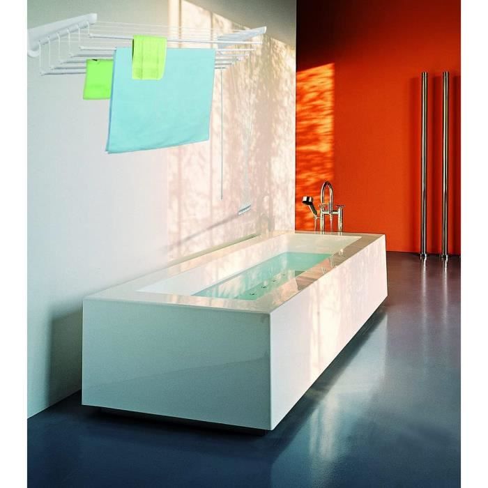 Longueur de séchage : 8,4 mètres de longueur de séchage, Couleur : Blanc, Nombre de tiges : 7, Poids : 4,3 kg Design pliable : Gagnez de la place en repliant le séchoir mural lorsqu’il n’est pas utilisé, idéal pour les petits espaces comme les salles de bain et les buanderies. Étendoir Mural, Étendoir Linge Interieur Pliable Mural, Rotation 90... Avantages de l’Étendoir Mural Pratique et Pliable : Gagnez de l’espace grâce à son design pliable simple de cet étendoir mural pliable. Caractéristiques de l’Étendoir Mural Marque : Wasophoogte, Matériau : Aluminium L’étendoir mural peut être fixé rapidement et sans problème au mur. Étendoir Mural Pliable pour un Espace Supplémentaire – Séchoir Mural Vous cherchez une solution pratique pour faire sécher votre linge ? L’étendoir mural de Wasophoogte est la solution parfaite ! Convient pour : Utilisation intérieure et extérieure étendoir Mural Rabattable Etendoir Linge Étendoir Mural Séchoir À Linge Etendoir Linge Interieur Etendoir Rabattable Leroy Merlin 6 mètres de longueur d’étendage : Le séchoir mural offre 8,4 mètres répartis sur 7 barres, permettant de sécher facilement une grande quantité de linge. Porte Cintre Mural, Lot de 2 Etendoir Mural Rabattable en Acier... L’aluminium durable résiste aux différentes conditions météorologiques. Question 4 : Combien d’espace l’étendoir mural prend-il une fois plié ? Une fois plié, l’étendoir mural pliable ne prend que 3 cm de profondeur, ce qui permet d’économiser de l’espace. Montage Facile avec Gabarit de Perçage Inclus pour le Séchoir Mural Grâce aux vis et au gabarit de perçage inclus, cet étendoir mural est facile à installer. Tower-Étendoir Mural Mural Vertical-Étendoir Rétractable Refermable Adapté à l’intérieur et à l’extérieur : Ce séchoir mural en aluminium résiste aux intempéries, parfait pour une utilisation intérieure et extérieure. Cet étendoir mural pliable se monte facilement au mur avec les vis fournies et est adapté pour un usage intérieur et extérieur. Convient pour l’intérieur et l’extérieur : Utilisez cet étendoir mural où vous le souhaitez, à l’intérieur comme à l’extérieur. Question 2 : Quelle est la longueur de séchage de l’étendoir mural ? L’étendoir mural offre 6 mètres de longueur de séchage, répartis sur 6 tiges. Fixations de barres améliorées : Les nouvelles fixations avec plaques latérales assurent un maintien solide des barres pour sécher votre linge en toute sécurité. Fixation Améliorée des Tiges pour Plus de Sécurité avec l’Étendoir Mural L’étendoir mural de Wasophoogte est équipé de fixations de tiges améliorées, incluant des plaques latérales. Design amélioré : Fixations de tiges améliorées avec plaques latérales pour éviter le décrochage des tiges Adapté à l’Intérieur et à l’Extérieur – Étendoir Mural Pliable Ce séchoir mural pliable polyvalent est non seulement adapté pour un usage intérieur, comme dans la salle de bain ou la buanderie, mais aussi pour l’extérieur, par exemple sur un balcon ou dans le jardin. Grâce aux fixations de tiges améliorées, les tiges restent bien en place, vous permettant de sécher votre linge en toute sécurité. Installation facile : Grâce aux vis fournies et au gabarit de perçage, le séchoir mural se fixe rapidement et facilement au mur, sans tracas.